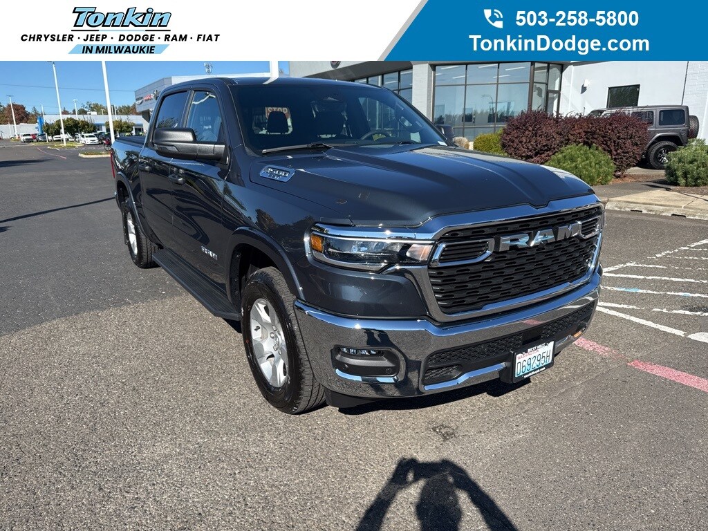 Recent Arrival! CARFAX One-Owner. Clean CARFAX. 2025 Ram 1500 Big Horn/Lone Star 3.0L I6 8-Speed Automatic 4WD 4D Crew Cab Forged Blue Metallic 4WD, 115V Auxiliary Power Outlet, 2nd Row In Floor Storage Bins, 400W Inverter, Auto Power-Folding Mirrors, Auto-Dimming Exterior Driver Mirror, Auto-Dimming Rear-View Mirror, Big Horn Level 1 Equipment Group, Black Exterior Mirrors, Black Premium Power Mirrors, Convex Wide-Angle Exterior Mirror Insert, Exterior Mirrors Courtesy Lamps, Exterior Mirrors w/Heating Element, Exterior Mirrors w/Supplemental Signals, Glove Box Lamp, Heated Front Seats, Heated Steering Wheel, Leather Wrapped Steering Wheel, Power 2-Way Driver Lumbar Adjust, Power Adjust 8-Way Driver Seat, Power Adjustable Pedals, Quick Order Package 21Z Big Horn, Rear Power Sliding Window, Rear Window Defroster, Steering Wheel Mounted Audio Controls, Sun Visors w/Illuminated Vanity Mirrors, Universal Garage Door Opener, 3 Rear Seat Head Restraints, 4 Way Front Headrests, 4-Wheel Disc Brakes, 4G LTE Wi-Fi Hot Spot, 6 Speakers, ABS brakes, Air Conditioning, AM/FM radio, Anti-Spin Differential Rear Axle, Apple CarPlay/Android Auto, Auto High-beam Headlights, Brake assist, Bumpers: chrome, Cloth Bench Seat, Compass, Connectivity - US/Canada, Custom Fuel Wheels and Off-Road Tires, Delay-off headlights, Driver door bin, Dual front impact airbags, Dual front side impact airbags, Electronic Stability Control, Front anti-roll bar, Front Center Armrest w/Storage, Front fog lights, Front License Plate Bracket, Front reading lights, Front Seat Back Map Pockets, Front wheel independent suspension, Fully automatic headlights, GPS Antenna Input, Heated door mirrors, Illuminated entry, Integrated Voice Command w/Bluetooth, Low tire pressure warning, Manual Adjust 4-Way Front Passenger Seat, Manual Folding Exterior Mirrors, Manufacturer's Statement of Origin, MOPAR Front & Rear Rubber Floor Mats, Occupant sensing airbag, Outside temperature display, Overhead airbag, Overhead console, Panic alarm, ParkView Rear Back-Up Camera, Passenger door bin, Passenger vanity mirror, Power door mirrors, Power steering, Power windows, Radio data system, Radio: Uconnect 5 W w/8.4" Display, RAM Grille Badge - Chrome, Rear 60/40 Folding Seat, Rear anti-roll bar, Rear seat center armrest, Rear step bumper, Remote keyless entry, Speed control, Split folding rear seat, Supplier Part Tracking (J-1), Tachometer, Telescoping steering wheel, Tilt steering wheel, Traction control, Trailer Brake Control, Trip computer, USB Host Flip, Variably intermittent wipers, Voltmeter, Wheels: 18" x 8" Cast-Aluminum Painted, 4WD, 115V Auxiliary Power Outlet, 2nd Row In Floor Storage Bins, 400W Inverter, Auto Power-Folding Mirrors, Auto-Dimming Exterior Driver Mirror, Auto-Dimming Rear-View Mirror, Big Horn Level 1 Equipment Group, Black Exterior Mirrors, Black Premium Power Mirrors, Convex Wide-Angle Exterior Mirror Insert, Exterior Mirrors Courtesy Lamps, Exterior Mirrors w/Heating Element, Exterior Mirrors w/Supplemental Signals, Glove Box Lamp, Heated Front Seats, Heated Steering Wheel, Leather Wrapped Steering Wheel, Power 2-Way Driver Lumbar Adjust, Power Adjust 8-Way Driver Seat, Power Adjustable Pedals, Quick Order Package 21Z Big Horn, Rear Power Sliding Window, Rear Window Defroster, Steering Wheel Mounted Audio Controls, Sun Visors w/Illuminated Vanity Mirrors, Universal Garage Door Opener. ***Call (503) 258-5800 to speak to a Sales Professional*** Come in to Ron Tonkin Chrysler Jeep Dodge Ram Fiat in Milwaukie to test drive today! DL0087.