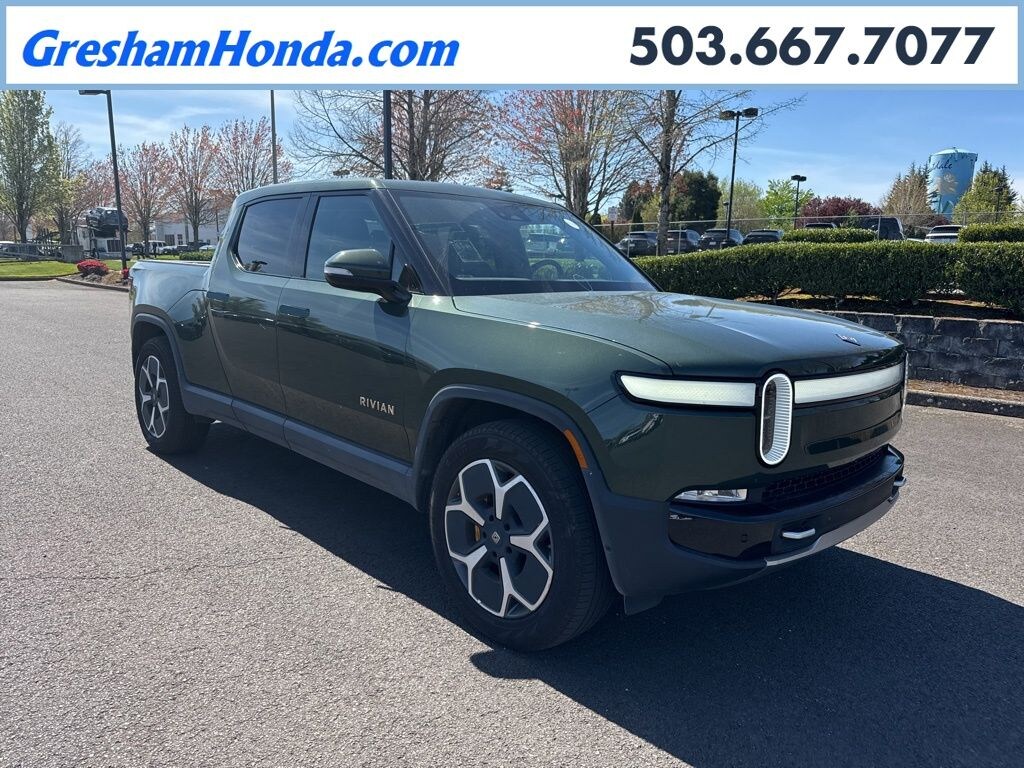 19 Speakers, 4-Wheel Disc Brakes, ABS brakes, Adaptive suspension, Adventure Package, Air Conditioning, Alloy wheels, Audio memory, Auto High-beam Headlights, Auto tilt-away steering wheel, Auto-dimming door mirrors, Auto-dimming Rear-View mirror, Auto-leveling suspension, Automatic temperature control, Brake assist, Delay-off headlights, Driver door bin, Driver vanity mirror, Dual front impact airbags, Dual front side impact airbags, Electronic Stability Control, Emergency communication system, Exterior Parking Camera Rear, Four wheel independent suspension, Front anti-roll bar, Front Bucket Seats, Front Center Armrest, Front dual zone A/C, Front fog lights, Front reading lights, Fully automatic headlights, Genuine wood console insert, Genuine wood dashboard insert, Genuine wood door panel insert, Heated & Ventilated Front Bucket Seats, Heated door mirrors, Heated front seats, Heated steering wheel, Illuminated entry, Knee airbag, Low tire pressure warning, Memory seat, Navigation System, Occupant sensing airbag, Outside temperature display, Overhead airbag, Panic alarm, Passenger door bin, Passenger vanity mirror, Perf Vegan Leather Seat Trim w/Patterned Stitching, Power door mirrors, Power driver seat, Power passenger seat, Power steering, Power windows, Radio: Rivian Elevation Audio by Meridian, Rain sensing wipers, Rear air conditioning, Rear anti-roll bar, Rear audio controls, Rear dual zone A/C, Rear fog lights, Rear reading lights, Rear seat center armrest, Rear window defroster, Remote keyless entry, Security system, Speed control, Speed-sensing steering, Split folding rear seat, Spoiler, Steering wheel memory, Steering wheel mounted audio controls, Telescoping steering wheel, Tilt steering wheel, Traction control, Trip computer, Turn signal indicator mirrors, Variably intermittent wipers, Ventilated front seats, Wheels: 21" Road Machined Aluminum.