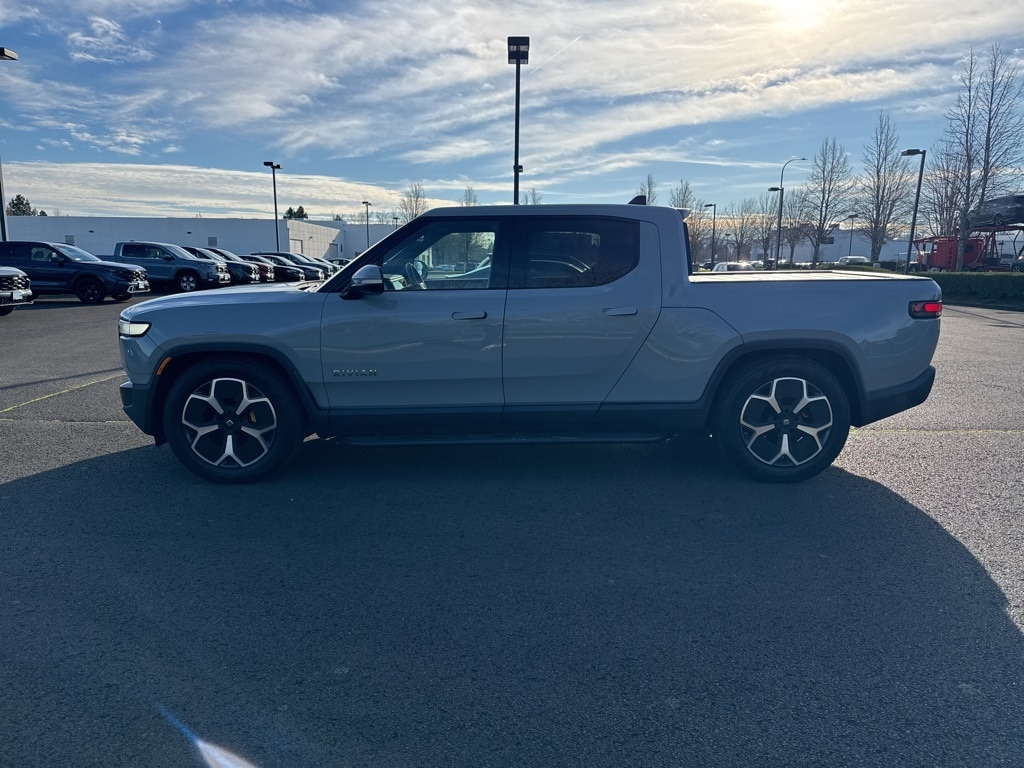 19 Speakers, 4-Wheel Disc Brakes, ABS brakes, Adaptive suspension, Air Conditioning, Alloy wheels, Audio memory, Auto High-beam Headlights, Auto tilt-away steering wheel, Auto-dimming door mirrors, Auto-dimming Rear-View mirror, Auto-leveling suspension, Automatic temperature control, Brake assist, Delay-off headlights, Driver door bin, Driver vanity mirror, Dual front impact airbags, Dual front side impact airbags, Electronic Stability Control, Emergency communication system, Exterior Parking Camera Rear, Four wheel independent suspension, Front anti-roll bar, Front Bucket Seats, Front Center Armrest, Front dual zone A/C, Front fog lights, Front reading lights, Fully automatic headlights, Genuine wood console insert, Genuine wood dashboard insert, Genuine wood door panel insert, Heated & Ventilated Front Bucket Seats, Heated door mirrors, Heated front seats, Heated steering wheel, Illuminated entry, Knee airbag, Low tire pressure warning, Memory seat, Navigation System, Occupant sensing airbag, Outside temperature display, Overhead airbag, Panic alarm, Passenger door bin, Passenger vanity mirror, Perf Vegan Leather Seat Trim w/Patterned Stitching, Power door mirrors, Power driver seat, Power passenger seat, Power steering, Power windows, Radio: Rivian Elevation Audio by Meridian, Rain sensing wipers, Rear air conditioning, Rear anti-roll bar, Rear audio controls, Rear dual zone A/C, Rear fog lights, Rear reading lights, Rear seat center armrest, Rear window defroster, Remote keyless entry, Security system, Speed control, Speed-sensing steering, Split folding rear seat, Spoiler, Steering wheel memory, Steering wheel mounted audio controls, Telescoping steering wheel, Tilt steering wheel, Traction control, Trip computer, Turn signal indicator mirrors, Variably intermittent wipers, Ventilated front seats, Wheels: 21" Road Machined Aluminum.