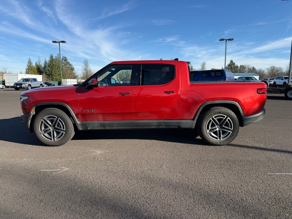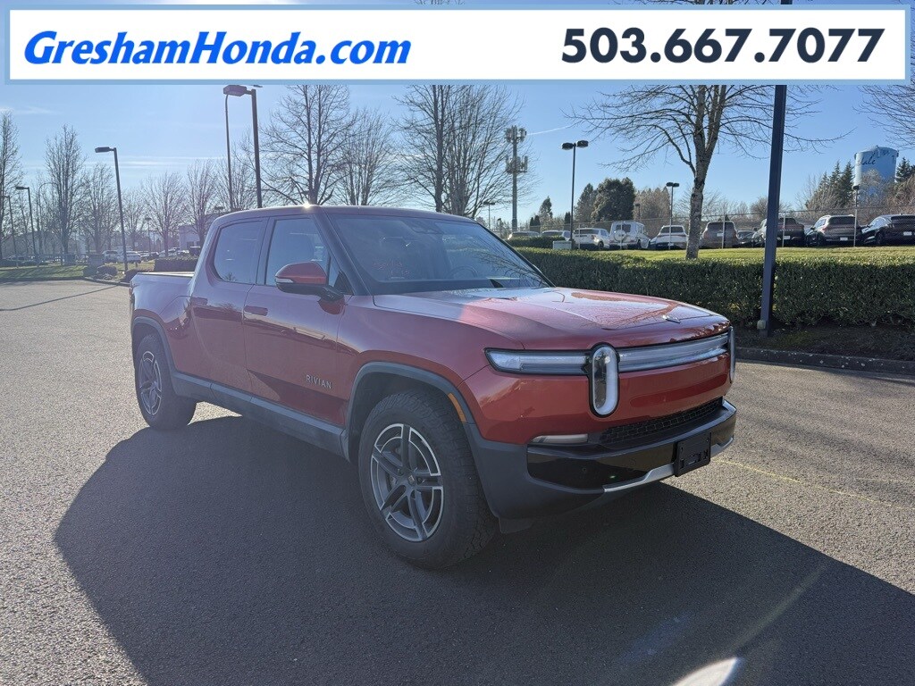 10 Speakers, 4-Wheel Disc Brakes, ABS brakes, Adaptive suspension, Air Conditioning, Alloy wheels, Audio memory, Auto High-beam Headlights, Auto tilt-away steering wheel, Auto-dimming door mirrors, Auto-dimming Rear-View mirror, Auto-leveling suspension, Automatic temperature control, Brake assist, Delay-off headlights, Driver door bin, Driver vanity mirror, Dual front impact airbags, Dual front side impact airbags, Electronic Stability Control, Emergency communication system, Exterior Parking Camera Rear, Four wheel independent suspension, Front anti-roll bar, Front Bucket Seats, Front Center Armrest, Front dual zone A/C, Front fog lights, Front reading lights, Fully automatic headlights, Garage door transmitter, Genuine wood console insert, Genuine wood dashboard insert, Genuine wood door panel insert, Heated & Ventilated Front Seats w/Memory, Heated door mirrors, Heated front seats, Heated rear seats, Heated steering wheel, Illuminated entry, Knee airbag, Low tire pressure warning, Memory seat, Navigation System, Occupant sensing airbag, Outside temperature display, Overhead airbag, Panic alarm, Passenger door bin, Passenger vanity mirror, Perf Vegan Lthr Seat Trim w/Dark Ash Wood, Power door mirrors, Power driver seat, Power passenger seat, Power steering, Power windows, Radio: Rivian Standard Audio, Rain sensing wipers, Rear air conditioning, Rear anti-roll bar, Rear audio controls, Rear dual zone A/C, Rear fog lights, Rear reading lights, Rear seat center armrest, Rear window defroster, Security system, Speed control, Speed-sensing steering, Split folding rear seat, Spoiler, Steering wheel memory, Steering wheel mounted audio controls, Telescoping steering wheel, Tilt steering wheel, Traction control, Trip computer, Turn signal indicator mirrors, Variably intermittent wipers, Ventilated front seats, Wheels: 22" x 8.5" Sport Bright.