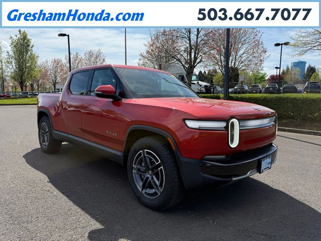 10 Speakers, 4-Wheel Disc Brakes, ABS brakes, Adaptive suspension, Air Conditioning, Alloy wheels, Audio memory, Auto High-beam Headlights, Auto tilt-away steering wheel, Auto-dimming door mirrors, Auto-dimming Rear-View mirror, Auto-leveling suspension, Automatic temperature control, Brake assist, Delay-off headlights, Driver door bin, Driver vanity mirror, Dual front impact airbags, Dual front side impact airbags, Electronic Stability Control, Emergency communication system, Exterior Parking Camera Rear, Four wheel independent suspension, Front anti-roll bar, Front Bucket Seats, Front Center Armrest, Front dual zone A/C, Front fog lights, Front reading lights, Fully automatic headlights, Garage door transmitter, Genuine wood console insert, Genuine wood dashboard insert, Genuine wood door panel insert, Heated & Ventilated Front Seats w/Memory, Heated door mirrors, Heated front seats, Heated rear seats, Heated steering wheel, Illuminated entry, Knee airbag, Low tire pressure warning, Memory seat, Navigation System, Occupant sensing airbag, Outside temperature display, Overhead airbag, Panic alarm, Passenger door bin, Passenger vanity mirror, Perf Vegan Lthr Seat Trim w/Dark Ash Wood, Power door mirrors, Power driver seat, Power passenger seat, Power steering, Power windows, Radio: Rivian Standard Audio, Rain sensing wipers, Rear air conditioning, Rear anti-roll bar, Rear audio controls, Rear dual zone A/C, Rear fog lights, Rear reading lights, Rear seat center armrest, Rear window defroster, Security system, Speed control, Speed-sensing steering, Split folding rear seat, Spoiler, Steering wheel memory, Steering wheel mounted audio controls, Telescoping steering wheel, Tilt steering wheel, Traction control, Trip computer, Turn signal indicator mirrors, Variably intermittent wipers, Ventilated front seats, Wheels: 20" x 8.5", Wheels: 22" x 8.5" Sport Bright.