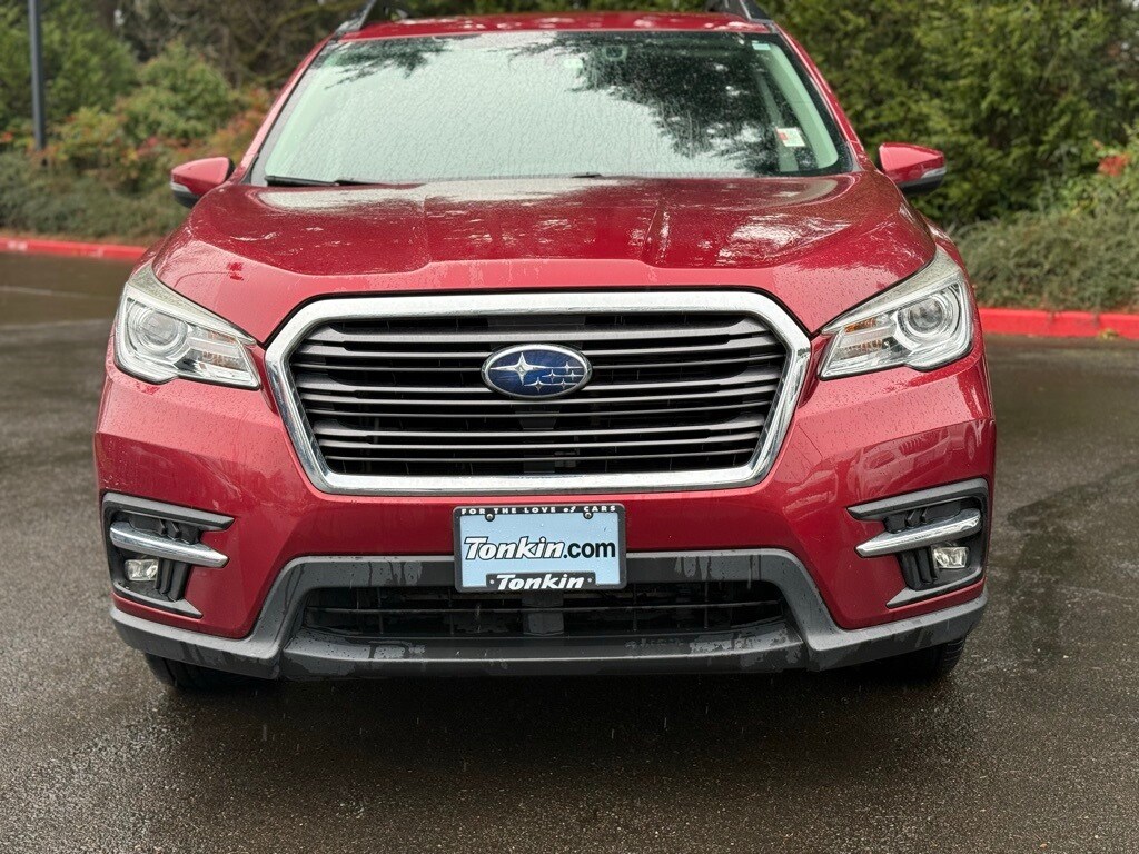 2019 Subaru Ascent Limited Crimson Red Pearl 2.4L DOHC 20" Alloy Wheels, 3rd row seats: bench, 4-Wheel Disc Brakes, 6 Speakers, ABS brakes, Air Conditioning, All-Weather Floor Liners, Alloy wheels, AM/FM radio: SiriusXM, Auto High-beam Headlights, Auto-Dimming Exterior Mirror w/Approach Light, Auto-dimming Rear-View mirror, Automatic temperature control, Axle Ratio: 4.44, Brake assist, Bumpers: body-color, Cargo Cover, Cargo Tray, CD player, Compass, Delay-off headlights, Driver door bin, Driver vanity mirror, Dual front impact airbags, Dual front side impact airbags, Electronic Stability Control, Emergency communication system: STARLINK Safety and Security, Exterior Parking Camera Rear, Four wheel independent suspension, Front anti-roll bar, Front Bucket Seats, Front Center Armrest, Front dual zone A/C, Front fog lights, Front reading lights, Fully automatic headlights, Garage door transmitter: HomeLink, Heated door mirrors, Heated Front Bucket Seats, Heated front seats, Heated rear seats, Heated steering wheel, Illuminated entry, Knee airbag, Low tire pressure warning, Memory seat, Occupant sensing airbag, Outside temperature display, Overhead airbag, Overhead console, Panic alarm, Passenger door bin, Passenger vanity mirror, Perforated Leather-Trimmed Upholstery, Popular Package #4, Power door mirrors, Power driver seat, Power Liftgate, Power passenger seat, Power steering, Power windows, Radio data system, Radio: Subaru STARLINK 8.0" Multimedia Plus System, Rear air conditioning, Rear anti-roll bar, Rear Bumper Cover, Rear reading lights, Rear Seatback Protector, Rear window defroster, Rear window wiper, Remote keyless entry, Roof rack: rails only, Security system, Speed control, Splash Guards, Split folding rear seat, Spoiler, Standard Model, STARLINK/Apple CarPlay/Android Auto, Steering wheel mounted audio controls, Tachometer, Telescoping steering wheel, Tilt steering wheel, Traction control, Trailer Hitch, Trip computer, Variably intermittent wipers.
