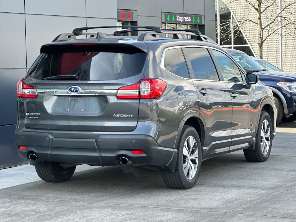 2019 Subaru Ascent Premium Magnetite Gray Metallic 2.4L DOHC 21/27 City/Highway MPG 3rd row seats: bench, 4-Wheel Disc Brakes, 6 Speakers, ABS brakes, Air Conditioning, All-Weather Floor Liners, Alloy wheels, AM/FM radio: SiriusXM, Auto-Dimming Exterior Mirror w/Approach Light, Auto-Dimming Rear View Compass Mirror w/HomeLink, Automatic temperature control, Axle Ratio: 4.44, Brake assist, Bumpers: body-color, Cargo Cover, CD player, Delay-off headlights, Driver door bin, Driver vanity mirror, Dual front impact airbags, Dual front side impact airbags, Electronic Stability Control, Emergency communication system: STARLINK Safety and Security, Exterior Parking Camera Rear, Four wheel independent suspension, Front anti-roll bar, Front Bucket Seats, Front Center Armrest, Front dual zone A/C, Front reading lights, Fully automatic headlights, Heated door mirrors, Heated Front Bucket Seats, Heated front seats, Illuminated entry, Keyless Access w/Push-Button Start, Knee airbag, Low tire pressure warning, Occupant sensing airbag, Outside temperature display, Overhead airbag, Overhead console, Panic alarm, Passenger door bin, Passenger vanity mirror, Power door mirrors, Power driver seat, Power Rear Gate w/Automatic Close & Height Memory, Power steering, Power windows, PRG & KAS & ADM & RAB, Radio data system, Radio: Subaru STARLINK 8.0" Multimedia Plus System, Rear air conditioning, Rear anti-roll bar, Rear reading lights, Rear window defroster, Rear window wiper, Remote keyless entry, Reverse Automatic Braking (RAB) System, Roof rack: rails only, Security system, Speed control, Spill Resistant Cloth Upholstery, Splash Guards, Split folding rear seat, Spoiler, STARLINK/Apple CarPlay/Android Auto, Steering wheel mounted audio controls, Tachometer, Telescoping steering wheel, Tilt steering wheel, Traction control, Trip computer, Variably intermittent wipers, Wheels: 18" Gray Aluminum Alloy w/Machine Finish. Clean CARFAX. Our Best Price Up Front, No Games or Gimmicks. Our advertised price is for a retail type purchase and may not be available for Fleet or Commercial use type purchase; please call us to confirm.