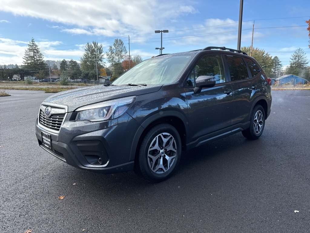 Recent Arrival! Odometer is 9249 miles below market average! 3.70 Axle Ratio, 4-Wheel Disc Brakes, 6 Speakers, ABS brakes, Air Conditioning, All-Weather Floor Liners, All-Weather Pkg & BSD & Keyless Access & Start, Alloy wheels, AM/FM radio: SiriusXM, Auto-Dimming Exterior Mirror w/Approach Lighting, Auto-Dimming Mirror w/Compass & HomeLink, Automatic temperature control, Blind Spot Detection w/Rear Cross Traffic Alert, Brake assist, Bumpers: body-color, Cargo Tray, CD player, Cloth Upholstery, Driver door bin, Driver vanity mirror, Dual front impact airbags, Dual front side impact airbags, Electronic Stability Control, Emergency communication system: STARLINK Safety and Security, Exterior Parking Camera Rear, Four wheel independent suspension, Front anti-roll bar, Front Bucket Seats, Front Center Armrest, Front reading lights, Fully automatic headlights, Heated Exterior Mirrors, Heated Front Seats, Illuminated entry, Keyless Access w/Push-Button Start, Knee airbag, Low tire pressure warning, Occupant sensing airbag, Outside temperature display, Overhead airbag, Overhead console, Panic alarm, Passenger door bin, Passenger vanity mirror, Popular Package #1, Power door mirrors, Power driver seat, Power moonroof: Panoramic, Power steering, Power windows, Radio data system, Radio: Subaru Starlink 6.5" Multimedia Plus System, Rear anti-roll bar, Rear Bumper Cover, Rear seat center armrest, Rear Seatback Protector, Rear window defroster, Rear window wiper, Remote keyless entry, Roof rack: rails only, Security system, Speed control, Speed-sensing steering, Split folding rear seat, Spoiler, STARLINK/Apple CarPlay/Android Auto, Steering wheel mounted audio controls, Tachometer, Telescoping steering wheel, Tilt steering wheel, Traction control, Trip computer, Variably intermittent wipers, Wheels: 17" x 7.0J Black Machine Finish Alloy, Windshield Wiper De-Icer. 2019 Subaru Forester Premium 4D Sport Utility 2.5L 4-Cylinder DOHC 16V VVT Lineartronic CVT AWD Dark Gray Metallic