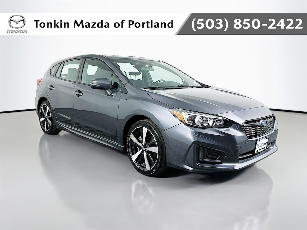 Available Soon. Pending Mechanical Pre-Inspection. Please Call (503) 257-2420 for Details! ! EYESIGHT AND MOONROOF AND BLIND SPOT AND REAR CROSS TRAFFIC ALERT! CARFAX One-Owner. Magnetite Gray Metallic 2019 Subaru Impreza 2.0i Sport 4D Hatchback 2.0L DOHC CVT Lineartronic AWD 4-Wheel Disc Brakes, 6 Speakers, ABS brakes, Air Conditioning, All-Weather Floor Liners, AM/FM radio: SiriusXM, Back Up Camera, Backup Camera, Blind Spot, Blind Spot Detection (BSD), BlueTooth, Brake assist, Bumpers: body-color, CD player, Delay-off headlights, Driver door bin, Driver vanity mirror, Dual front impact airbags, Dual front side impact airbags, Electronic Stability Control, Emergency communication system, EyeSight & Moonroof & BSD/RCTA & HK Audio, EyeSight System, Four wheel independent suspension, Front anti-roll bar, Front reading lights, Fully automatic headlights, harman/kardon Amplifier & Speakers, Heated door mirrors, Heated Seats, Illuminated entry, Keyless Entry, Knee airbag, Leather Shift Knob, Low tire pressure warning, Occupant sensing airbag, Outside temperature display, Overhead airbag, Overhead console, Panic alarm, Passenger vanity mirror, Power door mirrors, Power Moonroof, Power steering, Power windows, Radio data system, Radio: Subaru STARLINK 8.0" Multimedia Plus System, Rear anti-roll bar, Rear Cross Traffic Alert (RCTA), Rear window defroster, Remote keyless entry, Security system, Speed control, Speed-sensing steering, Spoiler, STARLINK/Apple CarPlay/Android Auto, Steering wheel mounted audio controls, Tachometer, Telescoping steering wheel, Tilt steering wheel, Traction control, Trip computer, Turn signal indicator mirrors.