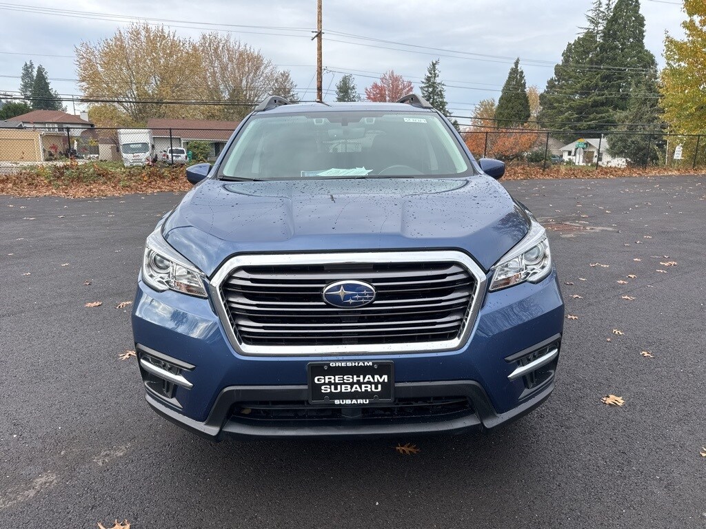 Keyless Access w/Push-Button Start, Power Rear Gate w/Automatic Close & Height Memory, Reverse Automatic Braking (RAB) System, 3rd row seats: bench, 4-Wheel Disc Brakes, 6 Speakers, ABS brakes, Air Conditioning, Alloy wheels, AM/FM radio: SiriusXM, Automatic temperature control, Axle Ratio: 4.44, Brake assist, Bumpers: body-color, CD player, Delay-off headlights, Driver door bin, Driver vanity mirror, Dual front impact airbags, Dual front side impact airbags, Electronic Stability Control, Emergency communication system: STARLINK Safety and Security (Subscription Required), Exterior Parking Camera Rear, Four wheel independent suspension, Front anti-roll bar, Front Bucket Seats, Front Center Armrest, Front dual zone A/C, Front reading lights, Fully automatic headlights, Heated door mirrors, Heated Front Bucket Seats, Heated front seats, Illuminated entry, Knee airbag, Low tire pressure warning, Occupant sensing airbag, Outside temperature display, Overhead airbag, Overhead console, Panic alarm, Passenger door bin, Passenger vanity mirror, Power door mirrors, Power driver seat, Power steering, Power windows, Radio data system, Radio: Subaru STARLINK 8.0" Multimedia Plus System, Rear air conditioning, Rear anti-roll bar, Rear reading lights, Rear window defroster, Rear window wiper, Reclining 3rd row seat, Remote keyless entry, Security system, Speed control, Spill Resistant Cloth Upholstery, Split folding rear seat, Spoiler, STARLINK/Apple CarPlay/Android Auto, Steering wheel mounted audio controls, Tachometer, Telescoping steering wheel, Tilt steering wheel, Traction control, Trip computer, Variably intermittent wipers, Wheels: 18" Gray Aluminum Alloy w/Machine Finish, Auto-Dimming Rear View Compass Mirror w/HomeLink, Convenience Package, Keyless Access w/Push-Button Start, Power Rear Gate w/Automatic Close & Height Memory, Reverse Automatic Braking (RAB) System. 2020 Subaru Ascent Premium 4D Sport Utility 2.4L DOHC Lineartronic CVT AWD Dark Blue Subaru Certified Pre-Owned Details: