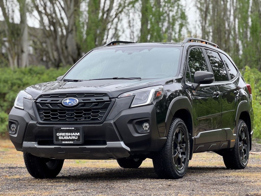 Recent Arrival! Odometer is 57638 miles below market average! Certified. ***ACCIDENT-FREE CARFAX***, ***ALL WHEEL DRIVE (AWD)***, ***APPLE CAR PLAY/ANDROID AUTO***, ***BLIND SPOT MONITORING***, ***CARFAX 1-OWNER***, ***EYESIGHT***, ***HEATED SEATS***, ***NAVIGATION GPS NAV***, ***SUBARU CERTIFIED PRE-OWNED W/WARRANTY***, Subaru Certified Pre-Owned Certified, 4-Wheel Disc Brakes, 4.11 Axle Ratio, 6 Speakers, ABS brakes, Air Conditioning, Alloy Wheel Locks, Alloy wheels, AM/FM radio: SiriusXM, Anti-whiplash front head restraints, Audio System & Navigation & Power Rr Gate, Auto High-beam Headlights, Auto-Dimming Mirror w/Compass & HomeLink, Automatic temperature control, Brake assist, Bumpers: body-color, CD player, Crystal Black Silica Body Side Molding, Crystal Black Silica Wilderness Door Edge Guards, Driver door bin, Driver vanity mirror, Dual front impact airbags, Dual front side impact airbags, Electronic Stability Control, Emergency communication system: STARLINK Safety and Security (Subscription Required), Exterior Parking Camera Rear, Four wheel independent suspension, Front anti-roll bar, Front Bucket Seats, Front Center Armrest, Front dual zone A/C, Front fog lights, Front reading lights, Fully automatic headlights, harman/kardon 576W Amp & Speaker System, Heated door mirrors, Heated Front Bucket Seats, Heated front seats, Illuminated entry, Knee airbag, Leather Shift Knob, Low tire pressure warning, Navigation System, Occupant sensing airbag, Outside temperature display, Overhead airbag, Overhead console, Panic alarm, Passenger door bin, Passenger vanity mirror, Power door mirrors, Power driver seat, Power moonroof: Panoramic, Power Rear Gate, Power steering, Power windows, Radio data system, Radio: Subaru Starlink 8.0" Multimedia Nav System, Radio: Subaru Starlink 8.0" Multimedia Plus System, Rear anti-roll bar, Rear Bumper Cover, Rear seat center armrest, Rear window defroster, Rear window wiper, Remote keyless entry, Roof rack: rails only, Security system, Speed control, Speed-sensing steering, Split folding rear seat, Spoiler, STARLINK/Apple CarPlay/Android Auto, Steering wheel mounted audio controls, Tachometer, Telescoping steering wheel, Textured StarTex Upholstery, Tilt steering wheel, Traction control, Trip computer, Turn signal indicator mirrors, Variably intermittent wipers, Wheels: 17" x 7.0J Matte Black Machine Finish Alloy, Wilderness Rear Seatback Protector, Wilderness Splash Guards. 2022 Subaru Forester Wilderness 4D Sport Utility 2.5L 4-Cylinder DOHC 16V Lineartronic CVT AWD Crystal Black Silica Subaru Certified Pre-Owned Details: