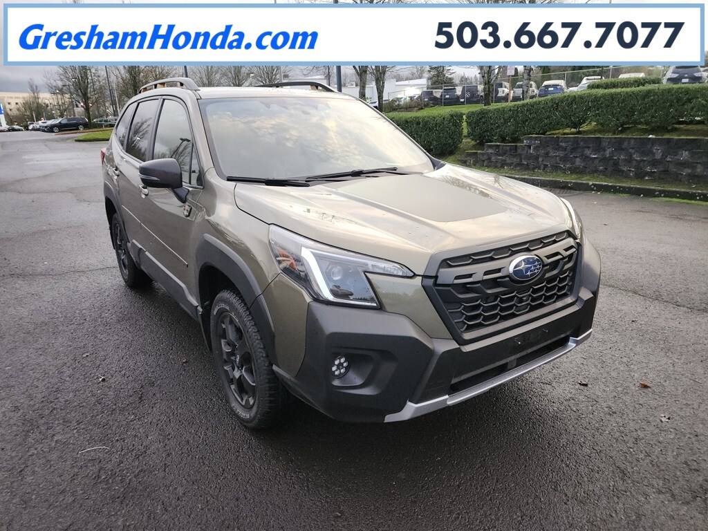 4-Wheel Disc Brakes, 4.11 Axle Ratio, 6 Speakers, 8" Audio w/harman/kardon & Power Rear Gate, ABS brakes, Air Conditioning, Alloy wheels, AM/FM radio: SiriusXM, Anti-whiplash front head restraints, Auto High-beam Headlights, Auto-Dimming Exterior Mirror w/Approach Light, Auto-Dimming Mirror w/Compass & HomeLink, Automatic temperature control, Brake assist, Bumpers: body-color, Cargo Sidewall Protector, CD player, Driver door bin, Driver vanity mirror, Dual front impact airbags, Dual front side impact airbags, Electronic Stability Control, Emergency communication system: STARLINK Safety and Security (Subscription Required), Exterior Parking Camera Rear, Four wheel independent suspension, Front anti-roll bar, Front Bucket Seats, Front Center Armrest, Front dual zone A/C, Front fog lights, Front reading lights, Fully automatic headlights, harman/kardon 9-Speaker Audio System, Heated door mirrors, Heated Front Bucket Seats, Heated front seats, Illuminated entry, Knee airbag, Leather Shift Knob, Low tire pressure warning, Navigation System, Occupant sensing airbag, Outside temperature display, Overhead airbag, Overhead console, Panic alarm, Passenger door bin, Passenger vanity mirror, Power door mirrors, Power driver seat, Power moonroof: Panoramic, Power Rear Gate, Power steering, Power windows, Radio data system, Radio: Subaru Starlink 8.0" Multimedia Nav System, Radio: Subaru Starlink 8.0" Multimedia Plus System, Rear anti-roll bar, Rear Bumper Cover, Rear seat center armrest, Rear Seatback Protector - Wilderness, Rear window defroster, Rear window wiper, Remote keyless entry, Roof rack: rails only, Security system, Speed control, Speed-sensing steering, Split folding rear seat, Spoiler, STARLINK/Apple CarPlay/Android Auto, Steering wheel mounted audio controls, Tachometer, Telescoping steering wheel, Textured StarTex Upholstery, Tilt steering wheel, Traction control, Trip computer, Turn signal indicator mirrors, Variably intermittent wipers, Wheels: 17" x 7.0 J Matte Black Finish Alum-Alloy, Wilderness Package.