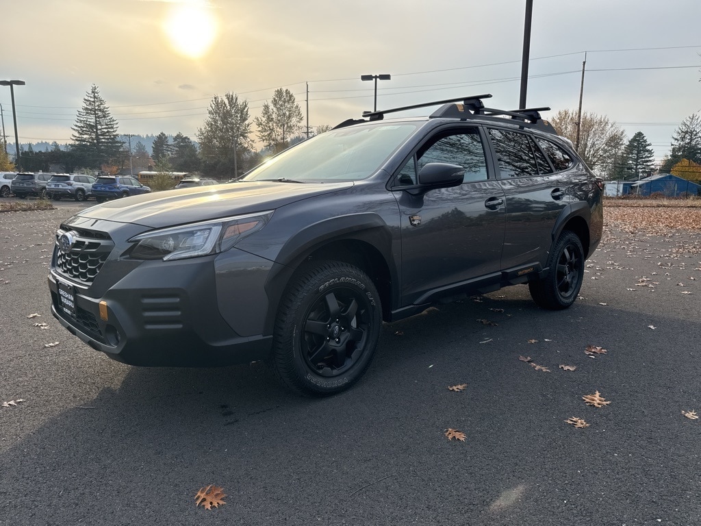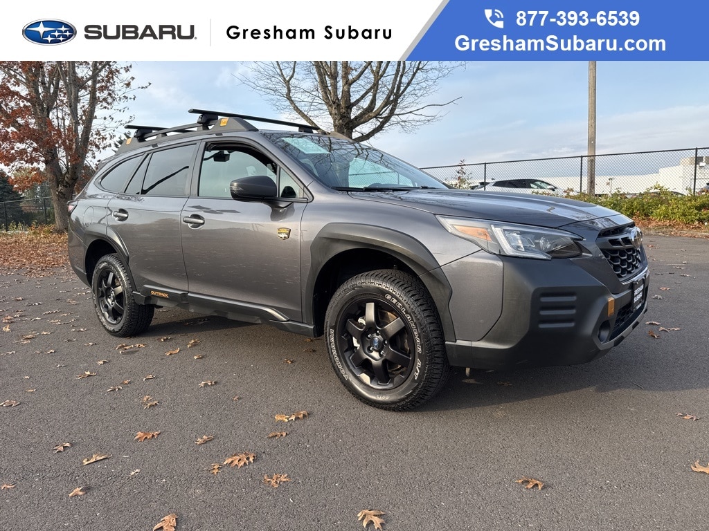 Recent Arrival! Odometer is 18660 miles below market average! Certified. Subaru Certified Pre-Owned Certified, Active Cruise Control, Automatic temperature control, Navigation System, Power Liftgate, Power Moonroof, Power Moonroof & Navigation & RAB, Power windows, Radio: Subaru STARLINK 11.6" Multimedia Nav System, Reverse Automatic Braking (RAB) System, Steering wheel mounted audio controls, 4-Wheel Disc Brakes, 4.444 Axle Ratio, 6 Speakers, ABS brakes, Air Conditioning, Alloy wheels, AM/FM radio: SiriusXM, Auto High-beam Headlights, Auto-Dimming Exterior Mirror w/Approach Light, Auto-dimming Rear-View mirror, Brake assist, Cargo Sidewall Protector, Compass, Driver door bin, Driver vanity mirror, Dual front impact airbags, Dual front side impact airbags, Electronic Stability Control, Emergency communication system: STARLINK Safety Plus (3-year free trial), Exterior Parking Camera Rear, Four wheel independent suspension, Front anti-roll bar, Front Bucket Seats, Front Center Armrest w/Storage, Front dual zone A/C, Front fog lights, Front reading lights, Fully automatic headlights, Garage door transmitter: HomeLink, Heated door mirrors, Heated Front Bucket Seats, Heated front seats, Heated rear seats, Illuminated entry, Knee airbag, Leather steering wheel, Low tire pressure warning, Occupant sensing airbag, Outside temperature display, Overhead airbag, Overhead console, Panic alarm, Passenger door bin, Passenger vanity mirror, Power door mirrors, Power driver seat, Power passenger seat, Power steering, Radio: Subaru STARLINK 11.6" Multimedia Plus Sys, Rear anti-roll bar, Rear seat center armrest, Rear window defroster, Rear window wiper, Remote keyless entry, Roof rack, Security system, Speed control, Speed-sensing steering, Split folding rear seat, Spoiler, StarTex-Trimmed Upholstery, Steering Wheel Paddle Shift Control Switches, Tachometer, Telescoping steering wheel, Tilt steering wheel, Traction control, Trip computer, Turn signal indicator mirrors, Variably intermittent wipers, Wheels: 17" x 7J Black Aluminum Alloy, Active Cruise Control, Automatic temperature control, Navigation System, Power Liftgate, Power Moonroof, Power Moonroof & Navigation & RAB, Power windows, Radio: Subaru STARLINK 11.6" Multimedia Nav System, Reverse Automatic Braking (RAB) System, Steering wheel mounted audio controls. 2023 Subaru Outback Wilderness 4D Sport Utility 2.4L DOHC CVT Lineartronic AWD Magnetite Gray Metallic Subaru Certified Pre-Owned Details: