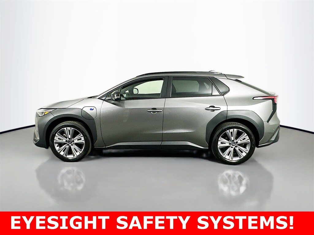 11 Speakers, 13.8 Axle Ratio, 4-Wheel Disc Brakes, ABS brakes, Air Conditioning, All-Weather Floor Liners, AM/FM radio: SiriusXM, Auto High-beam Headlights, Auto-dimming Rear-View mirror, Automatic temperature control, Brake assist, Bumpers: body-color, Cargo Tray, Driver door bin, Driver vanity mirror, Dual front impact airbags, Dual front side impact airbags, Electronic Stability Control, Emergency communication system: Subaru Solterra Connect - Safety Connect (1 year trial included), Four wheel independent suspension, Front anti-roll bar, Front Bucket Seats, Front Center Armrest, Front dual zone A/C, Front fog lights, Front reading lights, Fully automatic headlights, Garage door transmitter: HomeLink, harman/kardon® Speakers, Heated door mirrors, Heated Front Bucket Seats, Heated rear seats, Heated steering wheel, Illuminated entry, Knee airbag, Leather steering wheel, Low tire pressure warning, Memory seat, Navigation system: Cloud Navigation System (Subscription required), Occupant sensing airbag, Outside temperature display, Overhead airbag, Overhead console, Panic alarm, Passenger door bin, Passenger vanity mirror, Power door mirrors, Power driver seat, Power Liftgate, Power steering, Power windows, Radio data system, Radio: Subaru Solterra Connect 12.3" Multimedia System, Rain sensing wipers, Rear anti-roll bar, Rear reading lights, Rear seat center armrest, Rear window defroster, Remote keyless entry, Security system, Speed control, Speed-sensing steering, Split folding rear seat, Spoiler, Standard Model, StarTex Upholstery, Steering wheel mounted audio controls, Telescoping steering wheel, Tilt steering wheel, Traction control, Trip computer, Turn signal indicator mirrors, Variably intermittent wipers, Wheels: 20" x 7.5" J Aluminum-Alloy Gray Finish.