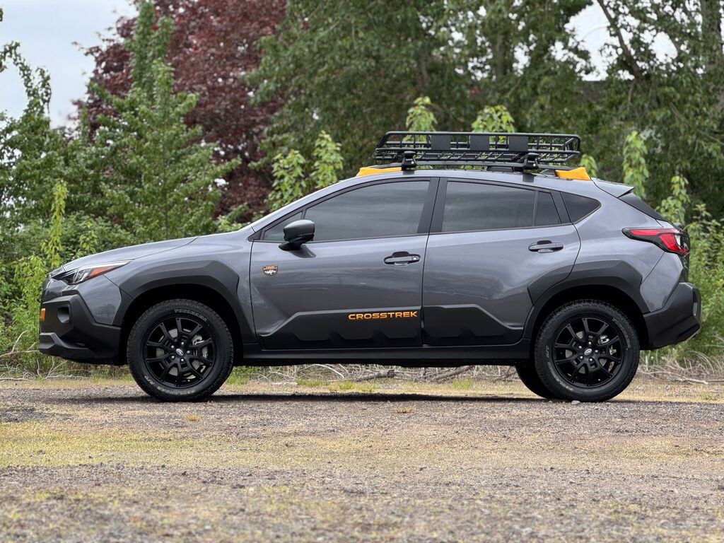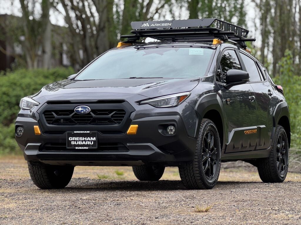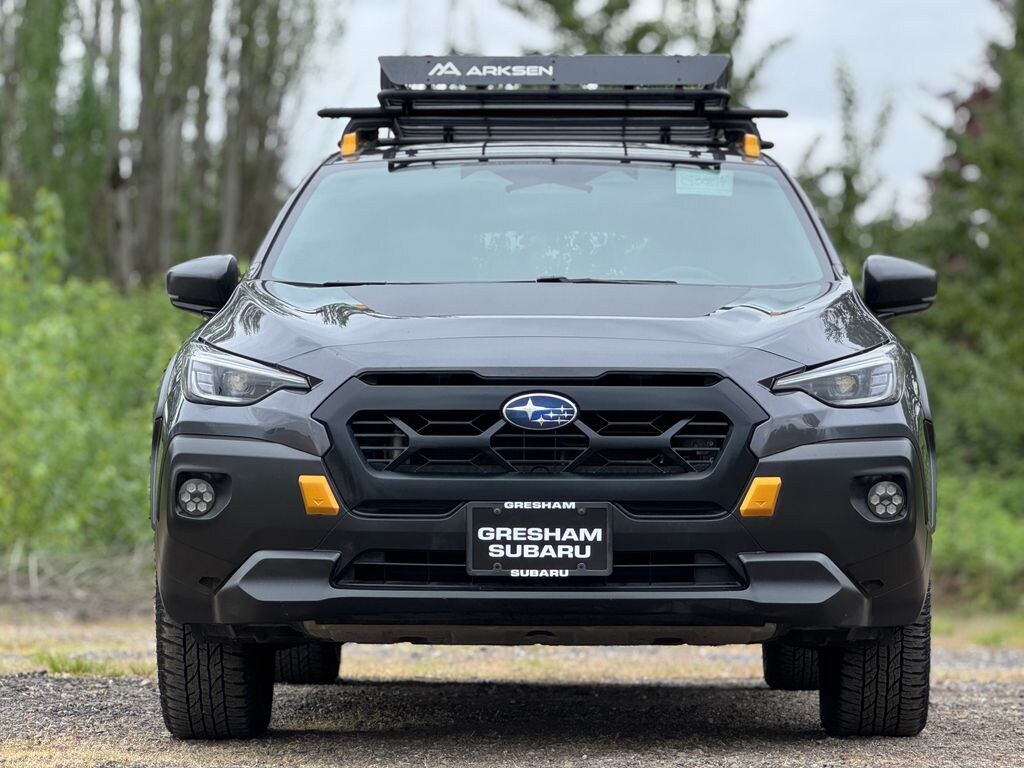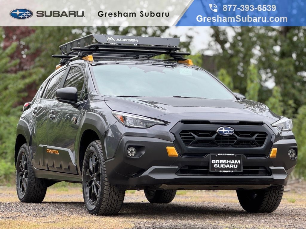 Recent Arrival! Odometer is 797 miles below market average! CARFAX One-Owner. ***ACCIDENT-FREE CARFAX***, ***ALL WHEEL DRIVE (AWD)***, ***APPLE CAR PLAY/ANDROID AUTO***, ***BLIND SPOT MONITORING***, ***CARFAX 1-OWNER***, ***EYESIGHT***, ***HEATED SEATS***, ***LOCAL TRADE***, 10-Way Power Driver's Seat, 4-Wheel Disc Brakes, 4.11 Axle Ratio, 6 Speakers, ABS brakes, Air Conditioning, Alloy wheels, AM/FM radio: SiriusXM, Anti-whiplash front head restraints, Auto High-beam Headlights, Auto-Dimming Exterior Mirror w/Approach Light, Auto-Dimming Mirror w/Compass & HomeLink, Automatic temperature control, Brake assist, Bumpers: body-color, Carpeted Floor Mats, Driver door bin, Driver vanity mirror, Dual front impact airbags, Dual front side impact airbags, Electronic Stability Control, Emergency communication system: STARLINK Safety and Security (Subscription Required), Exterior Parking Camera Rear, Four wheel independent suspension, Front anti-roll bar, Front Bucket Seats, Front Center Armrest, Front dual zone A/C, Front fog lights, Front reading lights, Fully automatic headlights, harman/kardon Aud & Pwr Moonroof & Pwr Driver Seat, harman/kardon Surround Sound Speaker System, Heated door mirrors, Heated Front Bucket Seats, Heated front seats, Illuminated entry, Knee airbag, Leather Shift Knob, LED Upgrade, Low tire pressure warning, Occupant sensing airbag, Outside temperature display, Overhead airbag, Overhead console, Panic alarm, Passenger door bin, Passenger vanity mirror, Power door mirrors, Power Moonroof, Power steering, Power windows, Radio data system, Radio: Subaru STARLINK 11.6" Multimedia Plus Sys, Rear anti-roll bar, Rear Bumper Cover - Wilderness, Rear seat center armrest, Rear Seatback Protector, Rear window defroster, Rear window wiper, Remote keyless entry, Security system, Speed control, Speed-sensing steering, Split folding rear seat, Spoiler, STARLINK/Apple CarPlay/Android Auto, Steering wheel mounted audio controls, Tachometer, Telescoping steering wheel, Tilt steering wheel, Traction control, Trip computer, Turn signal indicator mirrors, Variably intermittent wipers, Wheels: 17" x 7.0J Matte Black Aluminum Alloy, Wilderness Package, Wilderness StarTex Upholstery. 2024 Subaru Crosstrek Wilderness 4D Sport Utility 2.5L 4-Cylinder DOHC 16V Lineartronic CVT AWD Gray Metallic Clean CARFAX.