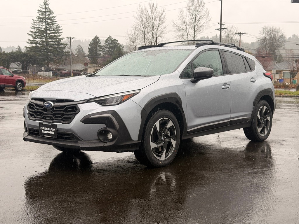 harman/kardon Audio & Power Moonroof & Navigation, harman/kardon Surround Sound Speaker System, Power Moonroof, Radio: Subaru STARLINK 11.6" Multimedia Nav System, 3.70 Axle Ratio, 4-Wheel Disc Brakes, 6 Speakers, ABS brakes, Air Conditioning, Alloy wheels, AM/FM radio: SiriusXM, Anti-whiplash front head restraints, Auto High-beam Headlights, Automatic temperature control, Brake assist, Bumpers: body-color, Driver door bin, Driver vanity mirror, Dual front impact airbags, Dual front side impact airbags, Electronic Stability Control, Emergency communication system: STARLINK Safety and Security (Subscription Required), Exterior Parking Camera Rear, Four wheel independent suspension, Front anti-roll bar, Front Bucket Seats, Front Center Armrest, Front dual zone A/C, Front fog lights, Front reading lights, Fully automatic headlights, Heated door mirrors, Heated Front Bucket Seats, Heated front seats, Illuminated entry, Knee airbag, Leather Shift Knob, Leather-Trimmed Upholstery, Low tire pressure warning, Occupant sensing airbag, Outside temperature display, Overhead airbag, Overhead console, Panic alarm, Passenger door bin, Passenger vanity mirror, Power door mirrors, Power driver seat, Power steering, Power windows, Radio data system, Radio: Subaru STARLINK 11.6" Multimedia Plus Sys, Rear anti-roll bar, Rear seat center armrest, Rear window defroster, Rear window wiper, Remote keyless entry, Security system, Speed control, Speed-sensing steering, Split folding rear seat, Spoiler, STARLINK/Apple CarPlay/Android Auto, Steering wheel mounted audio controls, Tachometer, Telescoping steering wheel, Tilt steering wheel, Traction control, Trip computer, Turn signal indicator mirrors, Variably intermittent wipers, Wheels: 18" x 7.0J Dark Gray Aluminum Alloy, harman/kardon Audio & Power Moonroof & Navigation, harman/kardon Surround Sound Speaker System, Power Moonroof, Radio: Subaru STARLINK 11.6" Multimedia Nav System. 2024 Subaru Crosstrek Limited 4D Sport Utility 2.5L 4-Cylinder DOHC 16V Lineartronic CVT AWD Gray Clean CARFAX.