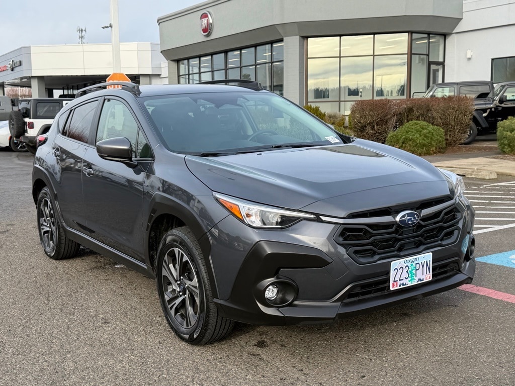 CARFAX One-Owner. Clean CARFAX. 2024 Subaru Crosstrek Premium 2.0L 4-Cylinder DOHC 16V Lineartronic CVT AWD 4D Sport Utility Horizon Blue Pearl AWD, 3.90 Axle Ratio, 4-Wheel Disc Brakes, 6 Speakers, ABS brakes, Air Conditioning, AM/FM radio: SiriusXM, Anti-whiplash front head restraints, Auto High-beam Headlights, Automatic temperature control, Brake assist, Bumpers: body-color, Custom Fuel Wheels and Off-Road Tires, Driver door bin, Driver vanity mirror, Dual front impact airbags, Dual front side impact airbags, Electronic Stability Control, Emergency communication system: STARLINK Safety and Security (Subscription Required), Exterior Parking Camera Rear, Four wheel independent suspension, Front anti-roll bar, Front Bucket Seats, Front Center Armrest, Front dual zone A/C, Front fog lights, Front reading lights, Fully automatic headlights, Illuminated entry, Knee airbag, Low tire pressure warning, Occupant sensing airbag, Outside temperature display, Overhead airbag, Overhead console, Panic alarm, Passenger door bin, Passenger vanity mirror, Power door mirrors, Power steering, Power windows, Premium Cloth Upholstery, Radio data system, Radio: Subaru STARLINK 11.6" Multimedia Plus Sys, Rear anti-roll bar, Rear seat center armrest, Rear window defroster, Rear window wiper, Remote keyless entry, Security system, Speed control, Speed-sensing steering, Split folding rear seat, Spoiler, STARLINK/Apple CarPlay/Android Auto, Steering wheel mounted audio controls, Tachometer, Telescoping steering wheel, Tilt steering wheel, Traction control, Trip computer, Turn signal indicator mirrors, Variably intermittent wipers, Wheels: 17" x 7.0J Dark Gray Aluminum Alloy, AWD. ***Call (503) 258-5800 to speak to a Sales Professional*** Come in to Ron Tonkin Chrysler Jeep Dodge Ram Fiat in Milwaukie to test drive today! DL0087.