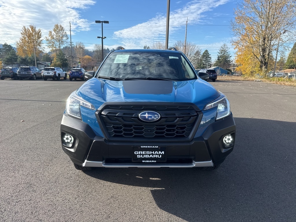 Recent Arrival! CARFAX One-Owner. 8" Audio w/harman/kardon & Power Rear Gate, Automatic temperature control, harman/kardon 9-Speaker Audio System, Navigation System, Power Rear Gate, Power windows, Radio: Subaru STARLINK 8.0" Multimedia Nav System, 4-Wheel Disc Brakes, 4.11 Axle Ratio, 6 Speakers, ABS brakes, Air Conditioning, Alloy wheels, AM/FM radio: SiriusXM, Anti-whiplash front head restraints, Auto High-beam Headlights, Brake assist, Bumpers: body-color, Driver door bin, Driver vanity mirror, Dual front impact airbags, Dual front side impact airbags, Electronic Stability Control, Emergency communication system: STARLINK Safety and Security (Subscription Required), Exterior Parking Camera Rear, Four wheel independent suspension, Front anti-roll bar, Front Bucket Seats, Front Center Armrest, Front dual zone A/C, Front fog lights, Front reading lights, Fully automatic headlights, Heated door mirrors, Heated Front Bucket Seats, Heated front seats, Illuminated entry, Knee airbag, Leather Shift Knob, Leather steering wheel, Low tire pressure warning, Occupant sensing airbag, Outside temperature display, Overhead airbag, Overhead console, Panic alarm, Passenger door bin, Passenger vanity mirror, Power door mirrors, Power driver seat, Power moonroof: Panoramic, Power steering, Radio data system, Radio: Subaru STARLINK 8.0" Multimedia Plus System, Rear anti-roll bar, Rear seat center armrest, Rear window defroster, Rear window wiper, Remote keyless entry, Roof rack: rails only, Security system, Speed control, Speed-sensing steering, Split folding rear seat, Spoiler, STARLINK/Apple CarPlay/Android Auto, Steering wheel mounted audio controls, Tachometer, Telescoping steering wheel, Textured StarTex Upholstery, Tilt steering wheel, Traction control, Trip computer, Turn signal indicator mirrors, Variably intermittent wipers, Wheels: 17" x 7.0 J Matte Black Finish Alum-Alloy, 8" Audio w/harman/kardon & Power Rear Gate, Automatic temperature control, harman/kardon 9-Speaker Audio System, Navigation System, Power Rear Gate, Power windows, Radio: Subaru STARLINK 8.0" Multimedia Nav System. 2024 Subaru Forester Wilderness 4D Sport Utility 2.5L 4-Cylinder DOHC 16V Lineartronic CVT AWD Geyser Blue Clean CARFAX.