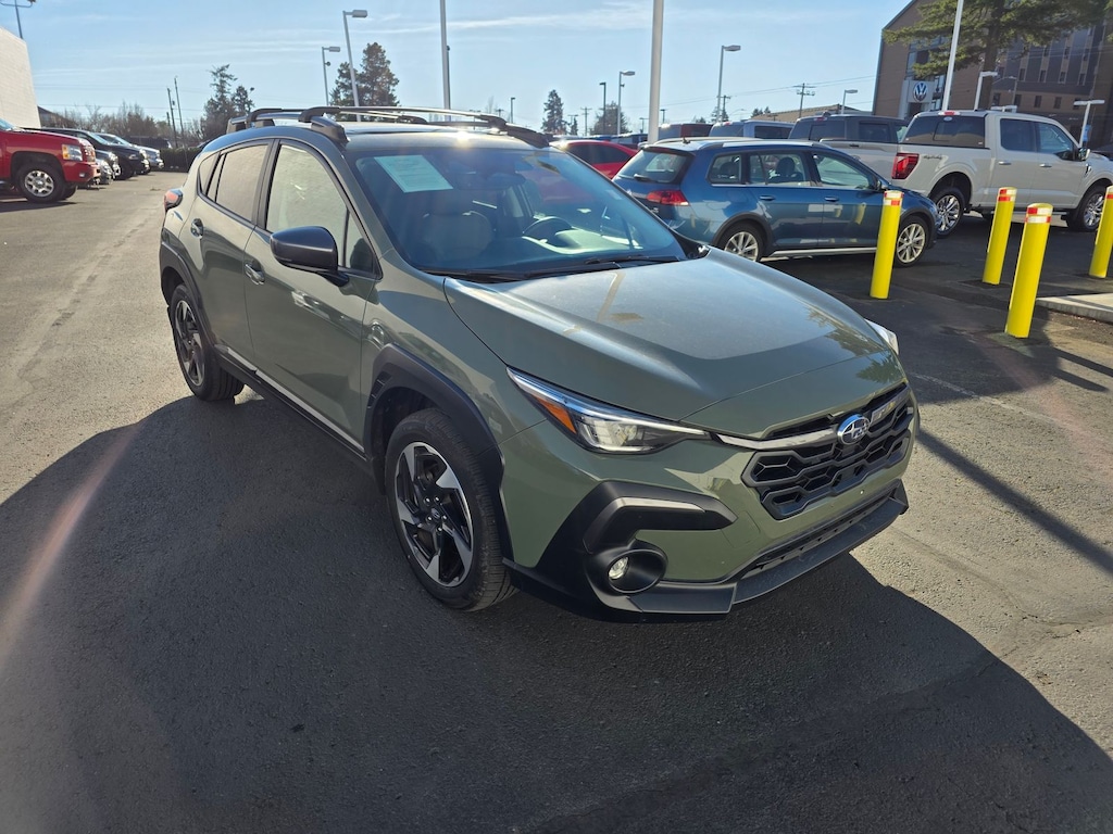 Recent Arrival! 2025 Subaru Crosstrek 4-Wheel Disc Brakes, 6 Speakers, ABS brakes, Air Conditioning, Alloy wheels, AM/FM radio: SiriusXM, Anti-whiplash front head restraints, Auto High-beam Headlights, Automatic temperature control, Brake assist, Bumpers: body-color, Driver door bin, Driver vanity mirror, Dual front impact airbags, Dual front side impact airbags, Electronic Stability Control, Emergency communication system, Exterior Parking Camera Rear, Four wheel independent suspension, Front anti-roll bar, Front Bucket Seats, Front Center Armrest, Front dual zone A/C, Front fog lights, Front reading lights, Fully automatic headlights, Heated door mirrors, Heated Front Bucket Seats, Heated front seats, Illuminated entry, Knee airbag, Leather Shift Knob, Leather steering wheel, Leather-Trimmed Upholstery, Low tire pressure warning, Occupant sensing airbag, Outside temperature display, Overhead airbag, Overhead console, Panic alarm, Passenger door bin, Passenger vanity mirror, Power door mirrors, Power driver seat, Power steering, Power windows, Radio data system, Radio: Subaru 11.6" Multimedia Plus System, Rear anti-roll bar, Rear seat center armrest, Rear window defroster, Rear window wiper, Remote keyless entry, Security system, Speed control, Speed-sensing steering, Split folding rear seat, Spoiler, Steering wheel mounted audio controls, Tachometer, Telescoping steering wheel, Tilt steering wheel, Traction control, Trip computer, Turn signal indicator mirrors, Variably intermittent wipers, Wheels: 18" x 7.0" J Machine Finish Aluminum-Alloy. 27/33 City/Highway MPG