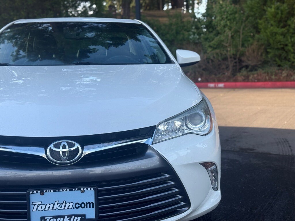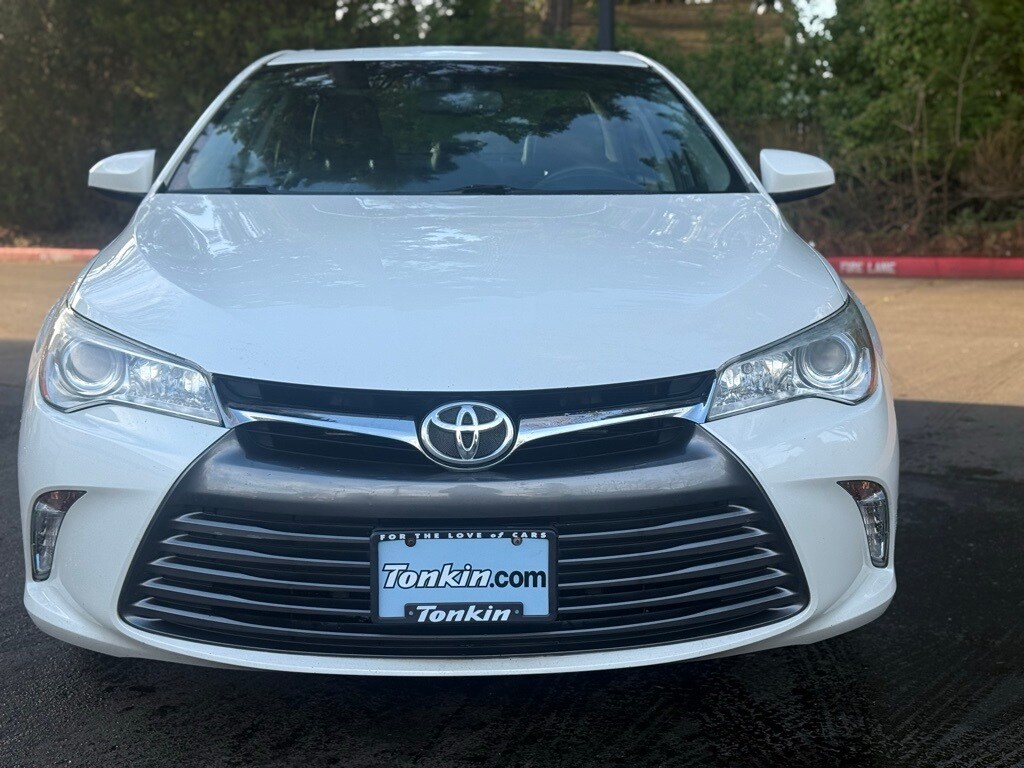 2015 Toyota Camry XLE White 2.5L I4 SMPI DOHC 4-Wheel Disc Brakes, 6 Speakers, 7.0J x 17" Alloy Wheels, ABS brakes, Air Conditioning, Alloy wheels, AM/FM radio: SiriusXM, Automatic temperature control, Brake assist, Bumpers: body-color, CD player, Chrome wheels, Delay-off headlights, Driver door bin, Driver vanity mirror, Dual front impact airbags, Dual front side impact airbags, Electronic Stability Control, Exterior Parking Camera Rear, Four wheel independent suspension, Front anti-roll bar, Front Bucket Seats, Front Center Armrest, Front dual zone A/C, Front reading lights, Fully automatic headlights, Heated door mirrors, Heated front seats, Illuminated entry, Knee airbag, Leather Seat Trim, Leather steering wheel, Low tire pressure warning, Multi-Stage Heated Front Bucket Seats, Occupant sensing airbag, Outside temperature display, Overhead airbag, Overhead console, Panic alarm, Passenger door bin, Passenger vanity mirror, Power door mirrors, Power driver seat, Power passenger seat, Power steering, Power windows, Radio: Entune Audio Plus, Rear anti-roll bar, Rear reading lights, Rear seat center armrest, Rear side impact airbag, Rear window defroster, Remote keyless entry, Speed control, Speed-sensing steering, Split folding rear seat, Steering wheel mounted audio controls, Tachometer, Telescoping steering wheel, Tilt steering wheel, Traction control, Trip computer, Variably intermittent wipers.
