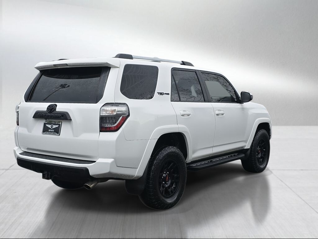 2016 Toyota 4Runner TRD Pro 4D Sport Utility 4.0L V6 SMPI DOHC 5-Speed Automatic with Overdrive 4WD Super White 3.727 Axle Ratio, 4-Wheel Disc Brakes, 8 Speakers, ABS brakes, Air Conditioning, All Weather Floor Mats & Cargo Tray, Alloy wheels, AM/FM radio: SiriusXM, Anti-whiplash front head restraints, Auto-Dimming Rear-View Mirror, Auto-dimming Rear-View mirror, Black Roof Rails, Brake assist, Bumpers: body-color, Cargo Cover, Cargo Cross Bars, CD player, Compass, Door Edge Guards, Driver door bin, Driver vanity mirror, Dual front impact airbags, Dual front side impact airbags, Electronic Stability Control, Exhaust Tip, Exterior Parking Camera Rear, First Aid Kit, Front anti-roll bar, Front Bucket Seats, Front Center Armrest, Front fog lights, Front reading lights, Front wheel independent suspension, Garage Door Opener, Garage door transmitter: HomeLink, Heated door mirrors, Heated Front Bucket Seats, Heated front seats, Hood Protector, Illuminated entry, Knee airbag, Leather Shift Knob, Low tire pressure warning, Navigation System, Occupant sensing airbag, Outside temperature display, Overhead airbag, Overhead console, Panic alarm, Passenger door bin, Passenger vanity mirror, Power door mirrors, Power driver seat, Power passenger seat, Power steering, Power windows, Radio: Entune Premium Audio w/Navigation, Rear anti-roll bar, Rear seat center armrest, Rear window defroster, Rear window wiper, Remote keyless entry, Roof rack, Security system, Softex Synthetic Leather Seat Trim, Speed control, Speed-sensing steering, Split folding rear seat, Spoiler, Steering wheel mounted audio controls, Tachometer, Telescoping steering wheel, Tilt steering wheel, Traction control, TRD Badging, TRD Pro Floor Mats, TRD Pro Package, TRD Shift Knob, TRD Suspension Kit, Trip computer, Turn signal indicator mirrors, Variably intermittent wipers, Voltmeter, Wheels: TRD 17" Matte Black Alloy.