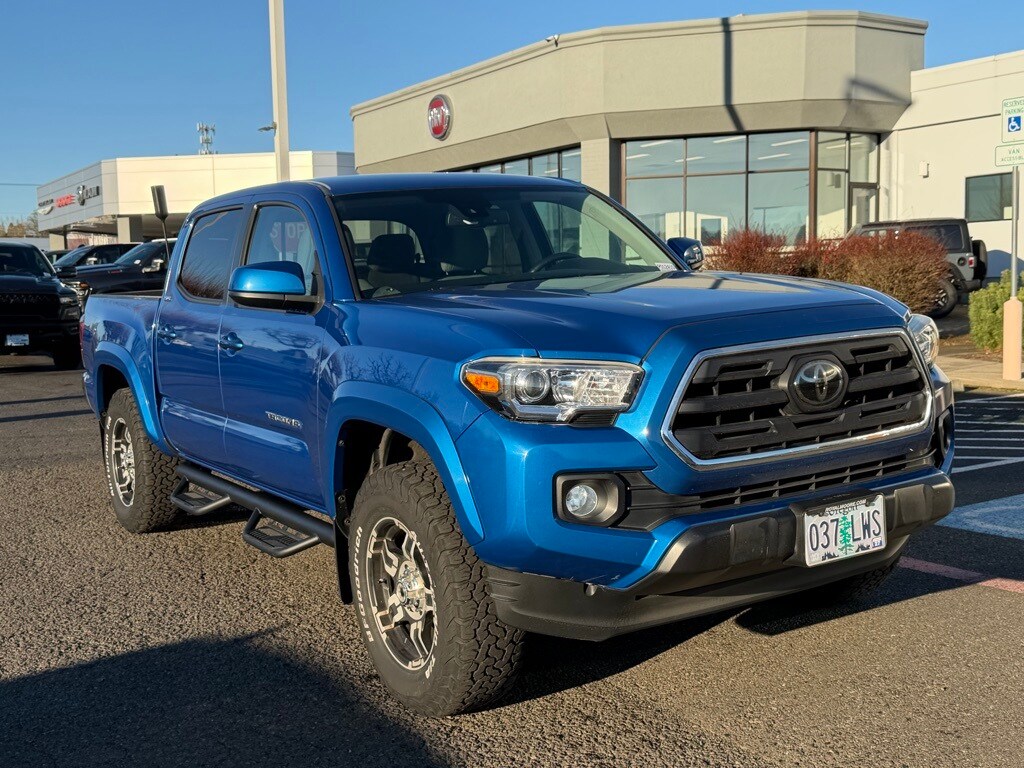 Recent Arrival! Clean CARFAX. 2018 Toyota Tacoma SR5 V6 3.5L V6 PDI DOHC 24V LEV3-ULEV70 278hp 6-Speed Automatic 4WD 4D Double Cab Blazing Blue Pearl 4WD, ABS brakes, Active Cruise Control, Auto-Dimming Inside Rear-View Mirror w/Compass, Chrome Rear Bumper, Color-Keyed Overfenders, Compass, Custom Fuel Wheels and Off-Road Tires, Daytime Running Lamps, Electronic Stability Control, Front Fog Lamps, Illuminated entry, Low tire pressure warning, Power Sliding Rear Window w/Privacy Glass, Remote keyless entry, Remote Keyless Entry System, SR5 Package, Traction control, Variable Intermittent Wipers. ***Call (503) 258-5800 to speak to a Sales Professional*** Come in to Ron Tonkin Chrysler Jeep Dodge Ram Fiat in Milwaukie to test drive today! DL0087.