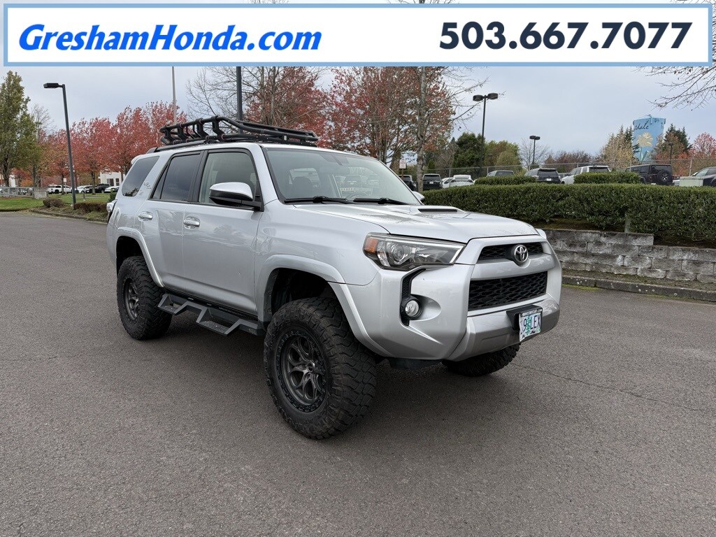 ABS brakes, Alloy wheels, Compass, Electronic Stability Control, Heated door mirrors, Illuminated entry, Low tire pressure warning, Remote keyless entry, Traction control, 3.727 Axle Ratio, 4-Wheel Disc Brakes, 8 Speakers, Air Conditioning, AM/FM radio: SiriusXM, Anti-whiplash front head restraints, Black Roof Rails, Brake assist, Bumpers: body-color, CD player, Driver door bin, Driver vanity mirror, Dual front impact airbags, Dual front side impact airbags, Emergency communication system: Safety Connect, Exterior Parking Camera Rear, Fabric Seat Trim, Front anti-roll bar, Front Bucket Seats, Front Center Armrest, Front fog lights, Front reading lights, Front wheel independent suspension, Knee airbag, Leather Shift Knob, Occupant sensing airbag, Off Road Package, Outside temperature display, Overhead airbag, Overhead console, Panic alarm, Passenger door bin, Passenger vanity mirror, Power door mirrors, Power driver seat, Power steering, Power windows, Radio: Entune Audio Plus, Rear anti-roll bar, Rear seat center armrest, Rear window defroster, Rear window wiper, Roof rack: rails only, Security system, Speed control, Speed-sensing steering, Split folding rear seat, Spoiler, Steering wheel mounted audio controls, Tachometer, Telescoping steering wheel, Tilt steering wheel, Trip computer, Variably intermittent wipers, Wheels: 17" x 7.5" 7-Spoke Unique Off-Road Alloy, ABS brakes, Alloy wheels, Compass, Electronic Stability Control, Heated door mirrors, Illuminated entry, Low tire pressure warning, Remote keyless entry, Traction control.