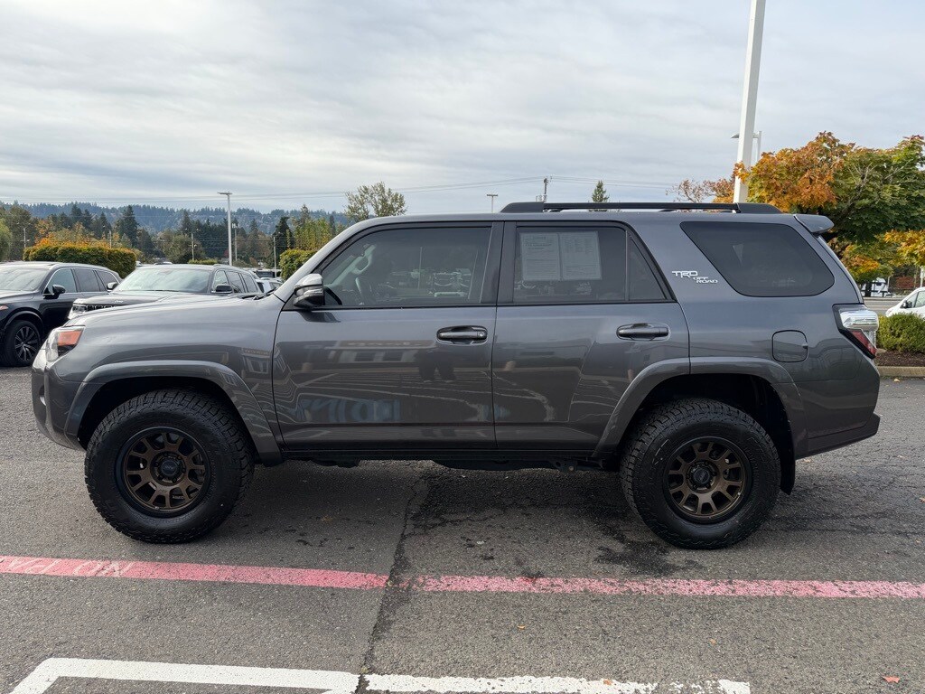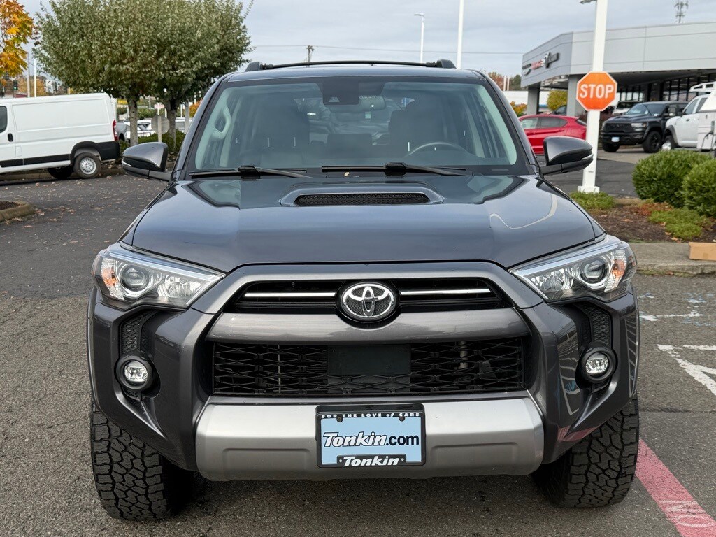 Recent Arrival! CARFAX One-Owner. Clean CARFAX. 2021 Toyota 4Runner TRD Off-Road Premium 4.0L V6 SMPI DOHC 5-Speed Automatic with Overdrive 4WD 4D Sport Utility Magnetic Gray Metallic 4WD, Black/Graphite Artificial Leather, Moonroof Package, Moonroof w/Tilt Up & Slide, Navigation System, 3.727 Axle Ratio, 4-Wheel Disc Brakes, 8 Speakers, ABS brakes, Air Conditioning, AM/FM radio: SiriusXM, Anti-whiplash front head restraints, Apple CarPlay/Android Auto, Auto High-beam Headlights, Auto-dimming Rear-View mirror, Black Roof Rails, Body Color Heated Mirrors, Brake assist, Bumpers: body-color, Compass, Custom Fuel Wheels and Off-Road Tires, Driver door bin, Driver vanity mirror, Dual front impact airbags, Dual front side impact airbags, Electronic Stability Control, Emergency communication system: Safety Connect with 1-year trial, Exterior Parking Camera Rear, Front anti-roll bar, Front Bucket Seats, Front Center Armrest, Front fog lights, Front reading lights, Front wheel independent suspension, Garage Door Opener, Garage door transmitter: HomeLink, Heated door mirrors, Heated Front Bucket Seats, Heated front seats, Illuminated entry, Knee airbag, Leather Shift Knob, Low tire pressure warning, Occupant sensing airbag, Outside temperature display, Overhead airbag, Overhead console, Panic alarm, Passenger door bin, Passenger vanity mirror, Power door mirrors, Power driver seat, Power passenger seat, Power steering, Power windows, Radio: Premium Audio w/Dynamic Navigation, Rear anti-roll bar, Rear seat center armrest, Rear window defroster, Rear window wiper, Remote keyless entry, Roof rack, Security system, Softex Synthetic Leather Seat Trim, Speed control, Speed-sensing steering, Split folding rear seat, Spoiler, Steering wheel mounted audio controls, Tachometer, Telescoping steering wheel, Tilt steering wheel, Traction control, Trip computer, Turn signal indicator mirrors, Variably intermittent wipers, Wheels: 17" x 7.5" 7-Spoke Unique Off-Road Alloy, 4WD, Black/Graphite Artificial Leather, Moonroof Package, Moonroof w/Tilt Up & Slide, Navigation System. ***Call (503) 258-5800 to speak to a Sales Professional*** Come in to Ron Tonkin Chrysler Jeep Dodge Ram Fiat in Milwaukie to test drive today! DL0087.