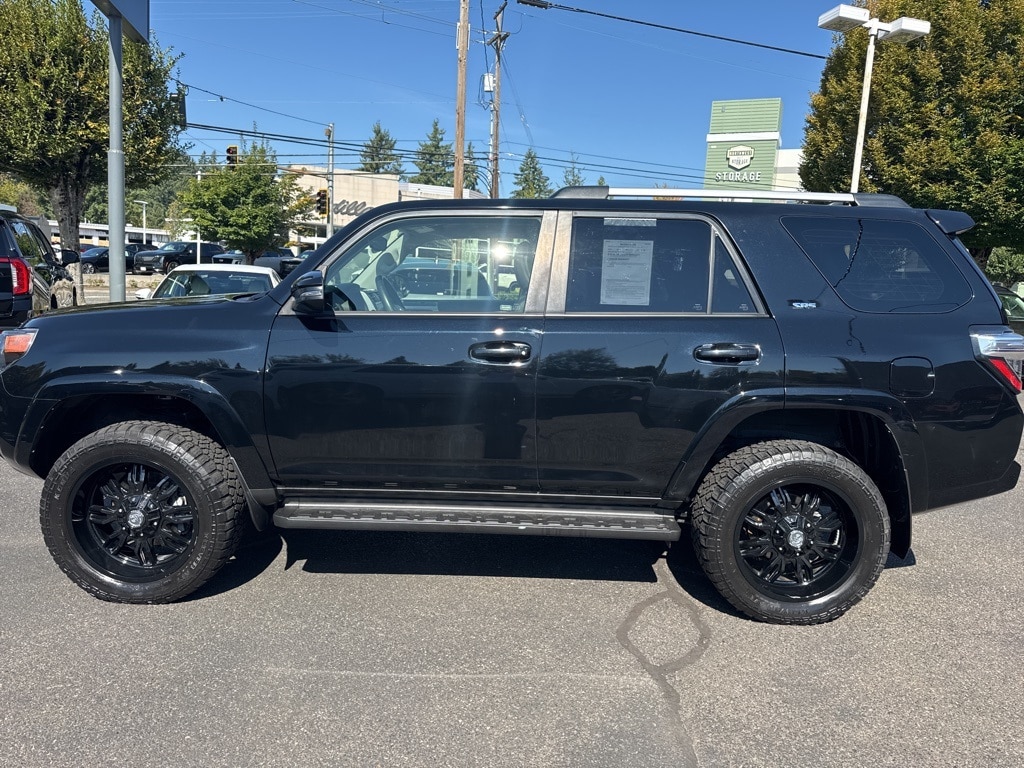 SR5 PREMIUM *** CUSTOM WHEELS *** 4X4 *** 2021 Toyota 4Runner SR5 Premium 4D Sport Utility 4.0L V6 SMPI DOHC 5-Speed Automatic with Overdrive 4WD Midnight Black Metallic 17" x 7.0" 6-Spoke Alloy Wheels, 3.727 Axle Ratio, 4-Wheel Disc Brakes, 8 Speakers, ABS brakes, Air Conditioning, Alloy wheels, AM/FM radio: SiriusXM, Anti-whiplash front head restraints, Apple CarPlay/Android Auto, Auto High-beam Headlights, Auto-dimming Rear-View mirror, Body Color Heated Mirrors, Brake assist, Bumpers: body-color, Compass, Driver door bin, Driver vanity mirror, Dual front impact airbags, Dual front side impact airbags, Electronic Stability Control, Emergency communication system: Safety Connect with 1-year trial, Exterior Parking Camera Rear, Front anti-roll bar, Front Bucket Seats, Front Center Armrest, Front fog lights, Front reading lights, Front wheel independent suspension, Garage Door Opener, Garage door transmitter: HomeLink, Heated door mirrors, Heated Front Bucket Seats, Heated front seats, Illuminated entry, Knee airbag, Leather Shift Knob, Leather steering wheel, Low tire pressure warning, Occupant sensing airbag, Outside temperature display, Overhead airbag, Overhead console, Panic alarm, Passenger door bin, Passenger vanity mirror, Power door mirrors, Power driver seat, Power passenger seat, Power steering, Power windows, Radio: Premium Audio w/Dynamic Navigation, Rear anti-roll bar, Rear seat center armrest, Rear window defroster, Rear window wiper, Remote keyless entry, Roof rack: rails only, Security system, Softex Synthetic Leather Seat Trim, Speed control, Speed-sensing steering, Split folding rear seat, Spoiler, Steering wheel mounted audio controls, Tachometer, Telescoping steering wheel, Tilt steering wheel, Traction control, Trip computer, Turn signal indicator mirrors, Variably intermittent wipers.