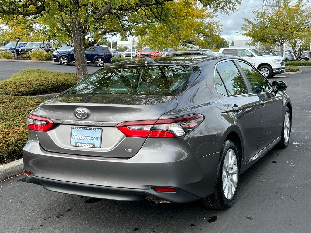 2021 Toyota Camry LE Gray 2.5L I4 DOHC 16V 28/39 City/Highway MPG Black Cloth, 4-Wheel Disc Brakes, 6 Speakers, 7.5J x 17" Alloy Wheels, ABS brakes, Air Conditioning, Alloy wheels, AM/FM radio: SiriusXM, Apple CarPlay/Android Auto, Auto High-beam Headlights, Brake assist, Bumpers: body-color, Delay-off headlights, Driver door bin, Driver vanity mirror, Dual front impact airbags, Dual front side impact airbags, Electronic Stability Control, Emergency communication system: Safety Connect with 1-year trial, Exterior Parking Camera Rear, Fabric Seat Trim, Four wheel independent suspension, Front anti-roll bar, Front Bucket Seats, Front Center Armrest, Front reading lights, Fully automatic headlights, Illuminated entry, Knee airbag, Low tire pressure warning, Occupant sensing airbag, Outside temperature display, Overhead airbag, Overhead console, Panic alarm, Passenger door bin, Passenger vanity mirror, Power door mirrors, Power driver seat, Power steering, Power windows, Radio data system, Radio: AM/FM Audio System, Rear anti-roll bar, Rear seat center armrest, Rear side impact airbag, Rear window defroster, Remote keyless entry, Security system, Speed control, Speed-sensing steering, Split folding rear seat, Steering wheel mounted audio controls, Tachometer, Telescoping steering wheel, Tilt steering wheel, Traction control, Trip computer, Variably intermittent wipers, Black Cloth. Priced below KBB Fair Purchase Price! Odometer is 14417 miles below market average! Our Best Price Up Front, No Games or Gimmicks. Our advertised price is for a retail type purchase and may not be available for Fleet or Commercial use type purchase; please call us to confirm.