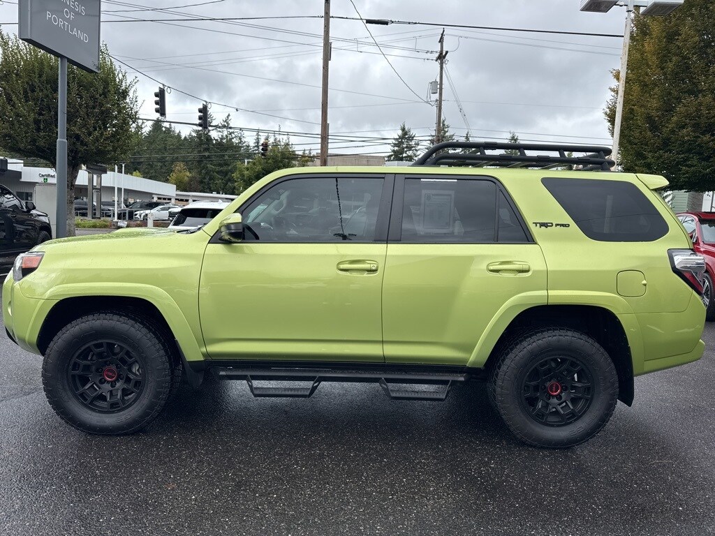2022 Toyota 4Runner TRD Pro 4D Sport Utility 4.0L V6 DOHC 24V 5-Speed with ECT 4WD Lime 15 Speakers, 3.727 Axle Ratio, 4-Wheel Disc Brakes, ABS brakes, Air Conditioning, Alloy wheels, AM/FM radio: SiriusXM, Anti-whiplash front head restraints, Apple CarPlay/Android Auto, Auto High-beam Headlights, Auto-dimming Rear-View mirror, Automatic temperature control, Black Lug Nuts, Blind Spot Monitor (BSM), Brake assist, Bumpers: body-color, Compass, Driver door bin, Driver vanity mirror, Dual front impact airbags, Dual front side impact airbags, Dual Zone Auto Climate Control, Electronic Stability Control, Emergency communication system: Safety Connect with 1-year trial, Fog Lights, Fox Shocks, Front anti-roll bar, Front Bucket Seats, Front Center Armrest, Front dual zone A/C, Front fog lights, Front reading lights, Front wheel independent suspension, Garage Door Opener, Garage door transmitter: HomeLink, Heated door mirrors, Heated Front Bucket Seats, Heated front seats, Illuminated entry, Knee airbag, Leather Shift Knob, Low tire pressure warning, Multi-Terrain Back Monitor, Navigation System, Occupant sensing airbag, Outside Rear View Mirror, Outside temperature display, Overhead airbag, Overhead console, Panic alarm, Passenger door bin, Passenger vanity mirror, Power door mirrors, Power driver seat, Power moonroof, Power passenger seat, Power steering, Power Tilt & Slide Moonroof w/Sunshade, Power windows, Radio: Premium Audio w/JBL, Rear anti-roll bar, Rear seat center armrest, Rear window defroster, Rear window wiper, Remote keyless entry, Roof rack, Security system, SofTex Seat Trim, Speed control, Speed-sensing steering, Split folding rear seat, Spoiler, Steering wheel mounted audio controls, Tachometer, Telescoping steering wheel, Tilt steering wheel, Traction control, TRD Badging, TRD Pro All Weather Floor Liner, TRD Shift Knob, Trip computer, Turn signal indicator mirrors, Variably intermittent wipers, Wheel Locks, Wheels: 17" Matte Black Flow-Formed TRD Alloy.