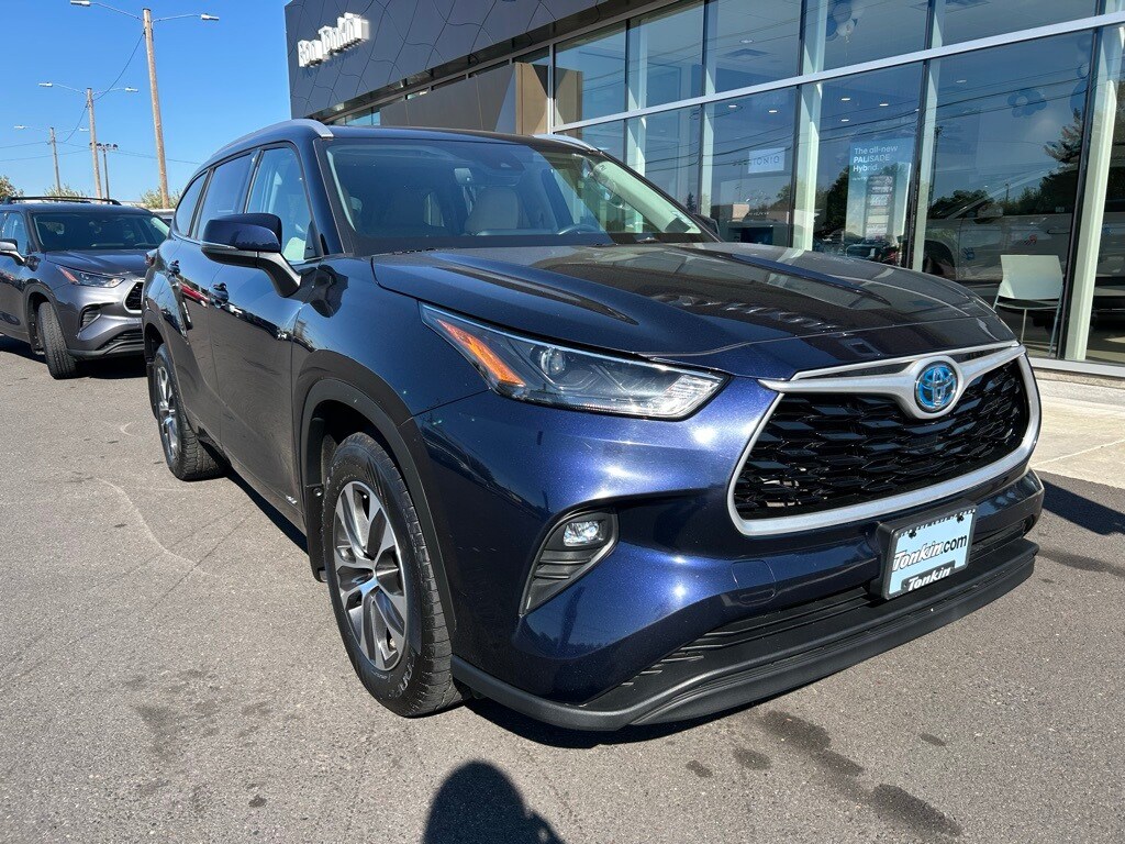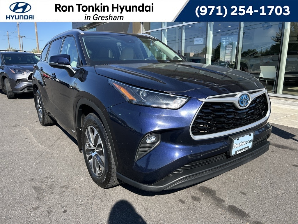2022 Toyota Highlander Hybrid XLE 2.5L I4 PDI Hybrid DOHC 16V LEV3-SULEV30 186hp eCVT AWD 4D Sport Utility Blue Locally Owned, Reduced Price, One-Owner, Clean Carfax, 2.5L I4 PDI Hybrid DOHC 16V LEV3-SULEV30 186hp, ABS brakes, Active Cruise Control, Alloy wheels, Electronic Stability Control, Front dual zone A/C, Heated door mirrors, Heated Front Bucket Seats, Heated front seats, Illuminated entry, Low tire pressure warning, Power Liftgate, Power moonroof, Remote keyless entry, Traction control. CARFAX One-Owner. Call for availability. Come in to Ron Tonkin Gresham Hyundai to test drive today! DA2028 View our entire inventory at https://www.rontonkinhyundai.com/