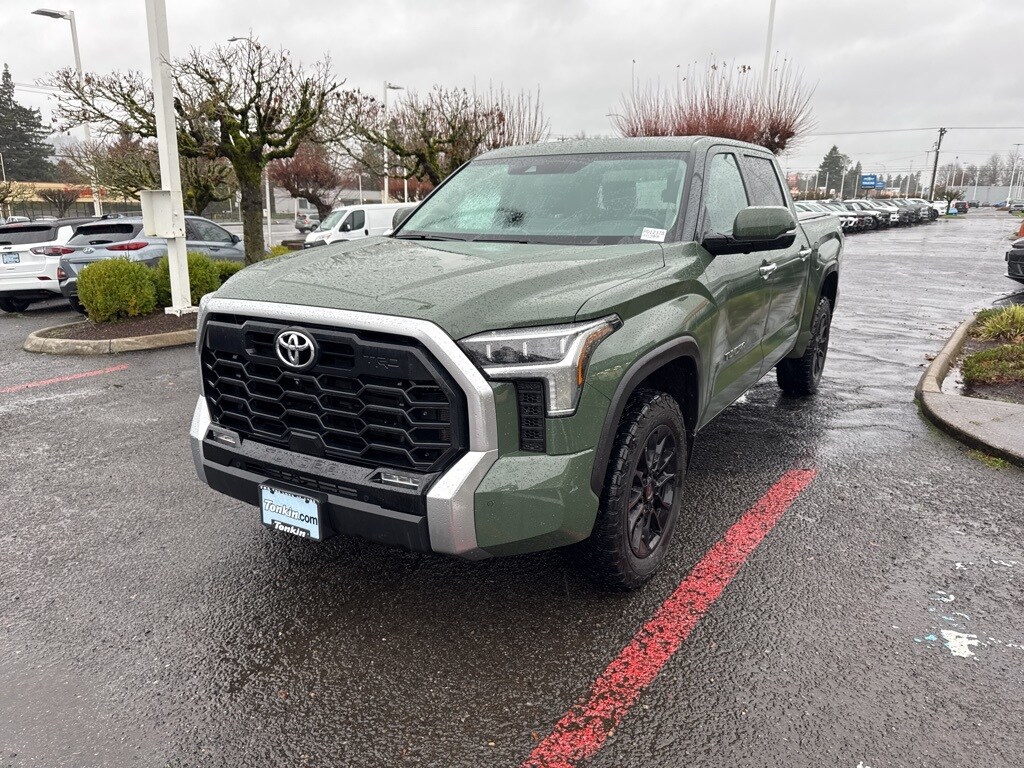 Recent Arrival! CARFAX One-Owner. 2022 Toyota Tundra Limited 3.4L V6 10-Speed Automatic 4WD 4D CrewMax Green 4WD, Bedside TRD Off Road Decal, Black Grille w/Chrome Surround, Color-Keyed Outside Mirrors, Front & Rear Mud Guards, High Grade Full LED Headlamp, Multi-Terrain Back Monitor, Panoramic View Back Monitor, Premium Package, Towing Package, TRD Off-Road Package, TRD Off-Road Suspension w/Bilstein Shocks, Wheels: 20" Black Alloy, 20" Alloy Wheels, 3.31 Axle Ratio, 4-Wheel Disc Brakes, 8-Way Pwr Adjustable Heated/Ventilated Front Seats, 9 Speakers, ABS brakes, Air Conditioning, AM/FM radio: SiriusXM, Apple CarPlay/Android Auto, Auto High-beam Headlights, Auto-dimming door mirrors, Auto-dimming Rear-View mirror, Automatic temperature control, Brake assist, Bumpers: body-color, Custom Fuel Wheels and Off-Road Tires, Delay-off headlights, Driver door bin, Driver vanity mirror, Dual front impact airbags, Dual front side impact airbags, Electronic Stability Control, Emergency communication system: Safety Connect with 1-year trial, Exterior Parking Camera Rear, Front anti-roll bar, Front Bucket Seats, Front Center Armrest, Front dual zone A/C, Front fog lights, Front reading lights, Front wheel independent suspension, Fully automatic headlights, Garage door transmitter: HomeLink, Heated door mirrors, Heated front seats, Illuminated entry, Knee airbag, Leather Shift Knob, Low tire pressure warning, Memory seat, Navigation System, Occupant sensing airbag, Outside temperature display, Overhead airbag, Overhead console, Panic alarm, Passenger door bin, Passenger vanity mirror, Power door mirrors, Power driver seat, Power passenger seat, Power steering, Power windows, Radio data system, Radio: Audio Multimedia System, Rear reading lights, Rear seat center armrest, Rear step bumper, Rear window defroster, Remote keyless entry, Safety Connect, Security system, SofTex Seat Trim, Speed control, Speed-sensing steering, Split folding rear seat, Steering wheel mounted audio controls, Tachometer, Telescoping steering wheel, Tilt steering wheel, Traction control, Trip computer, Turn signal indicator mirrors, Variably intermittent wipers, Ventilated front seats, Voltmeter, 4WD, Bedside TRD Off Road Decal, Black Grille w/Chrome Surround, Color-Keyed Outside Mirrors, Front & Rear Mud Guards, High Grade Full LED Headlamp, Multi-Terrain Back Monitor, Panoramic View Back Monitor, Premium Package, Towing Package, TRD Off-Road Package, TRD Off-Road Suspension w/Bilstein Shocks, Wheels: 20" Black Alloy. ***Call (503) 258-5800 to speak to a Sales Professional*** Come in to Ron Tonkin Chrysler Jeep Dodge Ram Fiat in Milwaukie to test drive today! DL0087.