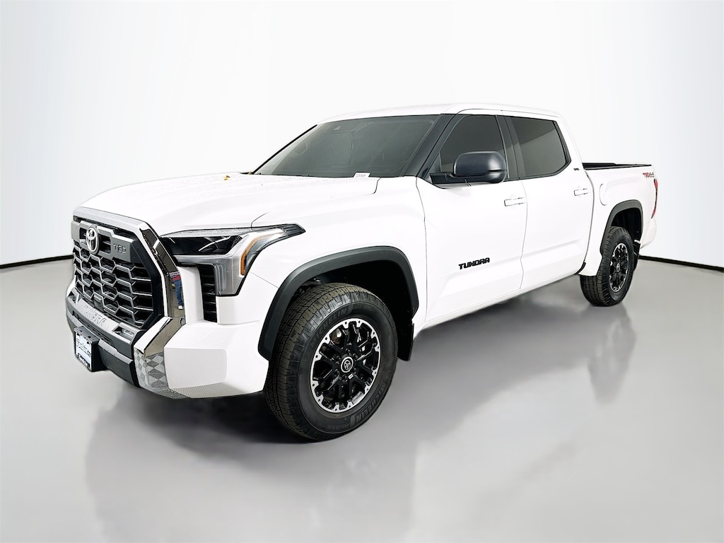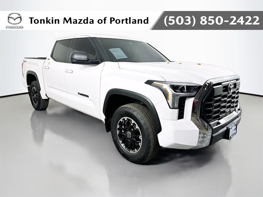 CARFAX One-Owner. White 2022 Toyota Tundra SR5 4D CrewMax 3.4L V6 10-Speed Automatic 4WD Android Auto, Apple CarPlay, Keyless Entry, Back Up Camera, BlueTooth, 4WD, Black Cloth, 4-Way Adjustable Front Bucket Seats, 4-Wheel Disc Brakes, 9 Speakers, ABS brakes, Air Conditioning, AM/FM radio: SiriusXM, Apple CarPlay/Android Auto, Auto High-beam Headlights, Automatic temperature control, Backup Camera, Bedside TRD Off Road Decal, Black Grille w/Chrome Surround, Blind Spot Monitor w/Lane Change Assist, Brake assist, Bumpers: body-color, Delay-off headlights, Driver door bin, Driver vanity mirror, Dual front impact airbags, Dual front side impact airbags, Electronic Stability Control, Emergency communication system: Safety Connect with 1-year trial, Fabric Seat Trim, Front & Rear Mud Guards, Front anti-roll bar, Front Bucket Seats, Front Center Armrest, Front fog lights, Front reading lights, Front Spoiler Delete, Front wheel independent suspension, Fully automatic headlights, Heated door mirrors, Heated Outside Mirrors, Illuminated entry, Knee airbag, Low tire pressure warning, Occupant sensing airbag, Outside temperature display, Overhead airbag, Overhead console, Panic alarm, Passenger vanity mirror, Power door mirrors, Power steering, Power windows, Radio data system, Radio: Audio Multimedia System, Rear reading lights, Rear step bumper, Rear window defroster, Remote keyless entry, Safety Connect, Security system, Speed control, Speed-sensing steering, Split folding rear seat, Steering wheel mounted audio controls, Tachometer, Telescoping steering wheel, Tilt steering wheel, Traction control, TRD Off-Road Package, TRD Off-Road Suspension w/Bilstein Shocks, Trip computer, Turn signal indicator mirrors, Voltmeter, Wheels: 20" Black Alloy, 18" Alloy Wheels, 3.31 Axle Ratio, Alloy wheels, Passenger door bin, Variably intermittent wipers, 4WD, Black Cloth, 4-Way Adjustable Front Bucket Seats, 4-Wheel Disc Brakes, 9 Speakers, ABS brakes, Air Conditioning, AM/FM radio: SiriusXM, Apple CarPlay/Android Auto, Auto High-beam Headlights, Automatic temperature control, Backup Camera, Bedside TRD Off Road Decal, Black Grille w/Chrome Surround, Blind Spot Monitor w/Lane Change Assist, Brake assist, Bumpers: body-color, Delay-off headlights, Driver door bin, Driver vanity mirror, Dual front impact airbags, Dual front side impact airbags, Electronic Stability Control, Emergency communication system: Safety Connect with 1-year trial, Fabric Seat Trim, Front & Rear Mud Guards, Front anti-roll bar, Front Bucket Seats, Front Center Armrest, Front fog lights, Front reading lights, Front Spoiler Delete, Front wheel independent suspension, Fully automatic headlights, Heated door mirrors, Heated Outside Mirrors, Illuminated entry, Knee airbag, Low tire pressure warning, Occupant sensing airbag, Outside temperature display, Overhead airbag, Overhead console, Panic alarm, Passenger vanity mirror, Power door mirrors, Power steering, Power windows, Radio data system, Radio: Audio Multimedia System, Rear reading lights, Rear step bumper, Rear window defroster, Remote keyless entry, Safety Connect, Security system, Speed control, Speed-sensing steering, Split folding rear seat, Steering wheel mounted audio controls, Tachometer, Telescoping steering wheel, Tilt steering wheel, Traction control, TRD Off-Road Package, TRD Off-Road Suspension w/Bilstein Shocks, Trip computer, Turn signal indicator mirrors, Voltmeter, Wheels: 20" Black Alloy.