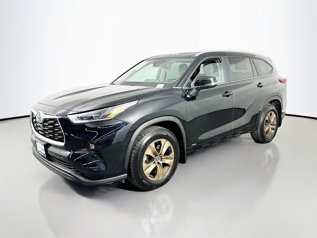 Midnight Black Metallic 2023 Toyota Highlander Hybrid Bronze Edition 4D Sport Utility 2.5L I4 PDI Hybrid DOHC 16V LEV3-SULEV30 eCVT AWD Android Auto, Apple CarPlay, 3RD Row, Keyless Entry, Blind Spot, Back Up Camera, BlueTooth, 2.5L I4 PDI Hybrid DOHC 16V LEV3-SULEV30, 4-Wheel Disc Brakes, 6 Speakers, ABS brakes, Air Conditioning, AM/FM radio: SiriusXM, Auto High-beam Headlights, Automatic temperature control, Backup Camera, Brake assist, Delay-off headlights, Dual front impact airbags, Dual front side impact airbags, Electronic Stability Control, Emergency communication system: Safety Connect (up to 10-year trial subscription), Four wheel independent suspension, Front anti-roll bar, Front dual zone A/C, Front fog lights, Fully automatic headlights, Knee airbag, Low tire pressure warning, Memory seat, Navigation system: Drive Connect Cloud Navigation (1-year trial subscription), Occupant sensing airbag, Overhead airbag, Power driver seat, Power Liftgate, Power moonroof, Power steering, Power windows, Radio: Premium Audio w/12.3" Touchscreen, Rear air conditioning, Rear anti-roll bar, Rear window defroster, Remote keyless entry, Speed-sensing steering, Steering wheel mounted audio controls, Traction control, 3rd row seats, Alloy wheels, Apple CarPlay/Android Auto, Auto-dimming Rear-View mirror, Axle Ratio: TBD, Bumpers: body-color, Carpet Cargo Mat, Carpeted Floor Mats, Driver door bin, Driver vanity mirror, Front Bucket Seats, Front Center Armrest, Front reading lights, Garage door transmitter: HomeLink, Heated door mirrors, Heated Front Bucket Seats, Heated front seats, High Grade LED, Illuminated Door Sills, Illuminated entry, Key Gloves, Leather Shift Knob, Leather steering wheel, Outside temperature display, Overhead console, Panic alarm, Passenger door bin, Passenger vanity mirror, Power door mirrors, Power passenger seat, Rain sensing wipers, Rear reading lights, Rear window wiper, Reclining 3rd row seat, Roof rack: rails only, Security system, SofTex Seat Trim, Speed control, Split folding rear seat, Spoiler, Telescoping steering wheel, Tilt steering wheel, Trip computer, Turn signal indicator mirrors, Variably intermittent wipers, Wheels: 18" Bronze-Finish Alloy, 2.5L I4 PDI Hybrid DOHC 16V LEV3-SULEV30, 4-Wheel Disc Brakes, 6 Speakers, ABS brakes, Air Conditioning, AM/FM radio: SiriusXM, Auto High-beam Headlights, Automatic temperature control, Backup Camera, Brake assist, Delay-off headlights, Dual front impact airbags, Dual front side impact airbags, Electronic Stability Control, Emergency communication system: Safety Connect (up to 10-year trial subscription), Four wheel independent suspension, Front anti-roll bar, Front dual zone A/C, Front fog lights, Fully automatic headlights, Knee airbag, Low tire pressure warning, Memory seat, Navigation system: Drive Connect Cloud Navigation (1-year trial subscription), Occupant sensing airbag, Overhead airbag, Power driver seat, Power Liftgate, Power moonroof, Power steering, Power windows, Radio: Premium Audio w/12.3" Touchscreen, Rear air conditioning, Rear anti-roll bar, Rear window defroster, Remote keyless entry, Speed-sensing steering, Steering wheel mounted audio controls, Traction control.