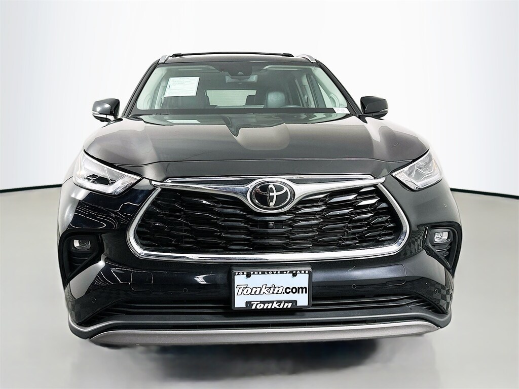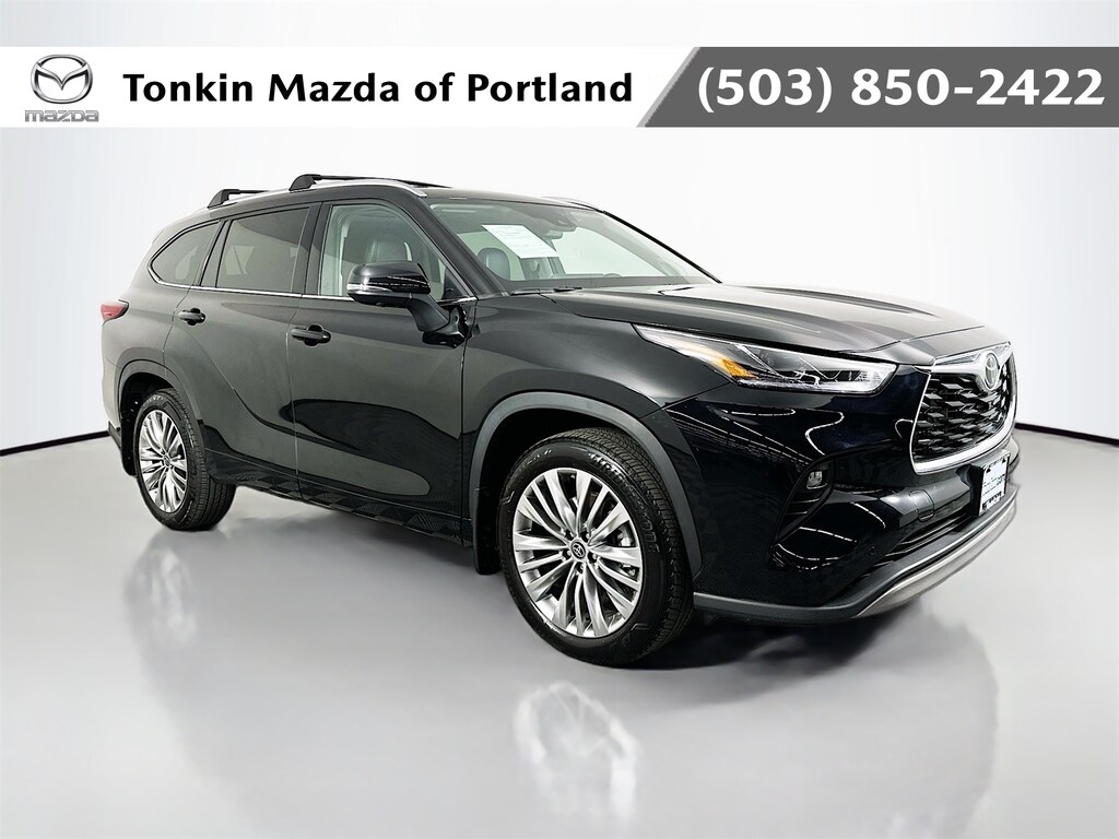 CARFAX One-Owner. Midnight Black Metallic 2023 Toyota Highlander Platinum 4D Sport Utility 2.4L I4 PDI Turbocharged DOHC 16V LEV3-SULEV30 265hp 8-Speed Automatic AWD AWD, 11 Speakers, 3RD Row, 3rd row seats, 4-Wheel Disc Brakes, ABS brakes, Active Cruise Control, Air Conditioning, Alloy wheels, AM/FM radio: SiriusXM, Android Auto, Apple CarPlay, Apple CarPlay/Android Auto, Auto High-beam Headlights, Auto-dimming Rear-View mirror, Automatic temperature control, Back Up Camera, Blind Spot, BlueTooth, Brake assist, Bumpers: body-color, Delay-off headlights, Digital Rearview Mirror w/HomeLink, Driver door bin, Driver vanity mirror, Dual front impact airbags, Dual front side impact airbags, Electronic Stability Control, Emergency communication system: Safety Connect (up to 10-year trial subscription), Four wheel independent suspension, Front anti-roll bar, Front Bucket Seats, Front Center Armrest, Front dual zone A/C, Front fog lights, Front reading lights, Fully automatic headlights, Garage door transmitter: HomeLink, Heads-Up Display, Heated door mirrors, Heated front seats, Heated rear seats, Heated steering wheel, Heated/Ventilated Front Bucket Seats, High Grade LED Projector Headlights, Illuminated entry, Keyless Entry, Knee airbag, Leather Seat Trim, Leather Shift Knob, Leather steering wheel, Low tire pressure warning, Memory seat, Navigation System, Navigation system: Drive Connect Cloud Navigation (1-year trial subscription), Occupant sensing airbag, Outside temperature display, Overhead airbag, Overhead console, Panic alarm, Panoramic Moonroof, Panoramic View Monitor, Passenger door bin, Passenger vanity mirror, Platinum Package, Power door mirrors, Power driver seat, Power Liftgate, Power moonroof, Power passenger seat, Power steering, Power windows, Radio: 12.3" Toyota Audio Multimedia w/JBL Premium, Rear air conditioning, Rear anti-roll bar, Rear reading lights, Rear window defroster, Reclining 3rd row seat, Remote keyless entry, Roof rack: rails only, Security system, Speed control, Speed-sensing steering, Split folding rear seat, Spoiler, Steering wheel mounted audio controls, Tachometer, Telescoping steering wheel, Tilt steering wheel, Traction control, Trip computer, Turn signal indicator mirrors, Ventilated front seats.