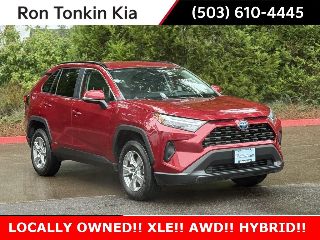 2023 Toyota RAV4 Hybrid XLE Ruby Flare Pearl 2.5L 4-Cylinder 4-Wheel Disc Brakes, 6 Speakers, ABS brakes, Air Conditioning, Alloy wheels, AM/FM radio: SiriusXM, Auto High-beam Headlights, Automatic temperature control, Axle Ratio: TBD, Brake assist, Bumpers: body-color, Delay-off headlights, Driver door bin, Driver vanity mirror, Dual front impact airbags, Dual front side impact airbags, Electronic Stability Control, Emergency communication system: Safety Connect (1-year trial), Exterior Parking Camera Rear, Fabric Seat Trim, Four wheel independent suspension, Front anti-roll bar, Front Bucket Seats, Front Center Armrest, Front dual zone A/C, Front reading lights, Front Sport Seats, Fully automatic headlights, Heated door mirrors, Illuminated entry, Knee airbag, Lane Departure Warning System, Low tire pressure warning, Occupant sensing airbag, Outside temperature display, Overhead airbag, Overhead console, Panic alarm, Passenger door bin, Passenger vanity mirror, Power door mirrors, Power driver seat, Power steering, Power windows, Radio data system, Radio: AM/FM/XM Audio System, Rear anti-roll bar, Rear seat center armrest, Rear window defroster, Rear window wiper, Remote keyless entry, Speed control, Speed-sensing steering, Split folding rear seat, Spoiler, Steering wheel mounted audio controls, Telescoping steering wheel, Tilt steering wheel, Traction control, Trip computer, Turn signal indicator mirrors, Variably intermittent wipers, Wheels: 17" x 7.0J Silver Aluminum Alloy.