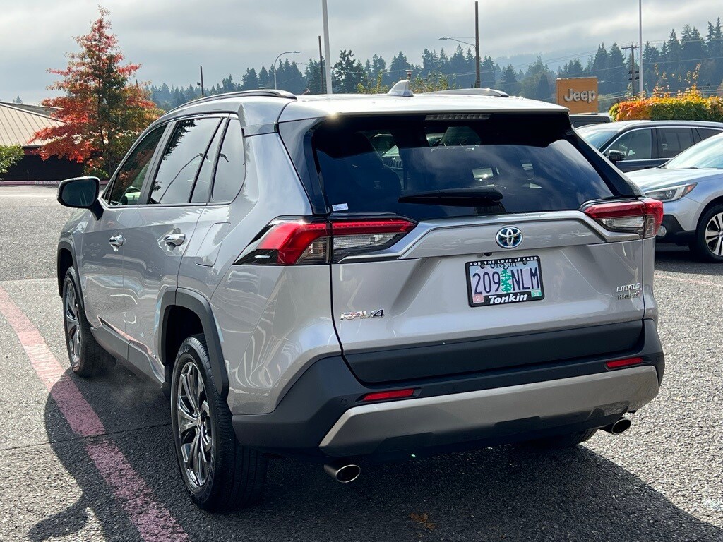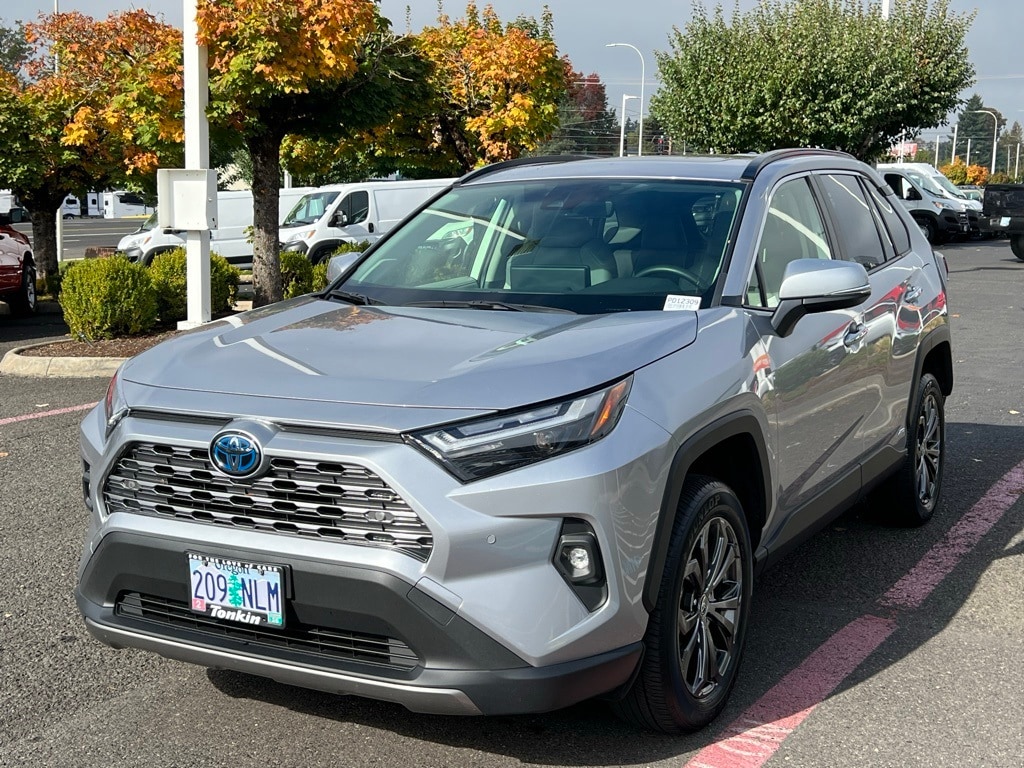 CARFAX One-Owner. 2023 Toyota RAV4 Hybrid Limited 2.5L 4-Cylinder eCVT AWD 4D Sport Utility Silver AWD, 11 Speakers, 4-Wheel Disc Brakes, ABS brakes, Air Conditioning, AM/FM radio: SiriusXM, Auto High-beam Headlights, Auto-dimming Rear-View mirror, Automatic temperature control, Axle Ratio: TBD, Brake assist, Bumpers: body-color, Custom Fuel Wheels and Off-Road Tires, Delay-off headlights, Driver door bin, Driver vanity mirror, Dual front impact airbags, Dual front side impact airbags, Electronic Stability Control, Emergency communication system: Safety Connect (1-year trial), Four wheel independent suspension, Front anti-roll bar, Front Bucket Seats, Front Center Armrest, Front dual zone A/C, Front fog lights, Front reading lights, Fully automatic headlights, Garage door transmitter: HomeLink, Heated door mirrors, Heated front seats, Heated/Ventilated Front Bucket Seats, Illuminated entry, JBL Audio System, Knee airbag, Lane Departure Warning System, Leather Shift Knob, Low tire pressure warning, Memory seat, Occupant sensing airbag, Outside temperature display, Overhead airbag, Overhead console, Panic alarm, Passenger door bin, Passenger vanity mirror, Power door mirrors, Power driver seat, Power Liftgate, Power moonroof, Power steering, Power windows, Radio data system, Rear anti-roll bar, Rear seat center armrest, Rear window defroster, Rear window wiper, Remote keyless entry, Security system, SofTex Seat Trim, Speed control, Speed-sensing steering, Split folding rear seat, Spoiler, Steering wheel mounted audio controls, Telescoping steering wheel, Tilt steering wheel, Traction control, Trip computer, Turn signal indicator mirrors, Variably intermittent wipers, Ventilated front seats, Wheels: 18" x 7.0J Silver Aluminum Alloy, AWD. ***Call (503) 258-5800 to speak to a Sales Professional*** Come in to Ron Tonkin Chrysler Jeep Dodge Ram Fiat in Milwaukie to test drive today! DL0087.