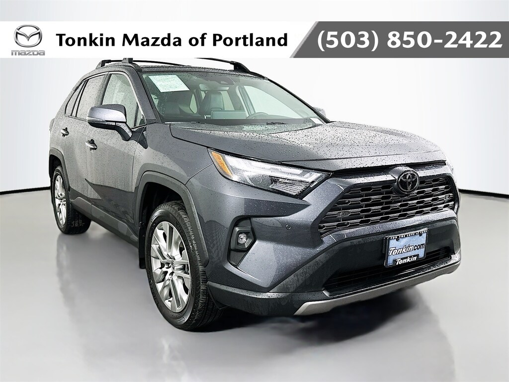 CARFAX One-Owner. Magnetic Gray Metallic 2023 Toyota RAV4 Limited 4D Sport Utility 2.5L 4-Cylinder DOHC Dual VVT-i 8-Speed Automatic AWD Android Auto, Apple CarPlay, Keyless Entry, Blind Spot, Back Up Camera, Heated Seats, BlueTooth, AWD, Black Artificial Leather, 11 Speakers, 3 Spoke Leather Heated Steering Wheel, 4-Wheel Disc Brakes, ABS brakes, Air Conditioning, AM/FM radio: SiriusXM, Anti-Theft System, Auto High-beam Headlights, Auto-dimming Rear-View mirror, Automatic temperature control, Backup Camera, Brake assist, Bumpers: body-color, Delay-off headlights, Driver door bin, Driver vanity mirror, Dual front impact airbags, Dual front side impact airbags, Electronic Stability Control, Emergency communication system: Safety Connect (10-year trial), Four wheel independent suspension, Front anti-roll bar, Front Bucket Seats, Front Center Armrest, Front dual zone A/C, Front fog lights, Front reading lights, Front Seat Heating/Ventilation, Fully automatic headlights, Garage door transmitter: HomeLink, Heated door mirrors, Heated front seats, Heated/Ventilated Front Bucket Seats, Illuminated entry, JBL Audio System, Knee airbag, Leather Shift Knob, Limited Grade Weather Package, Low tire pressure warning, Memory seat, Occupant sensing airbag, Outside temperature display, Overhead airbag, Overhead console, Panic alarm, Passenger vanity mirror, Power door mirrors, Power driver seat, Power Liftgate, Power moonroof, Power passenger seat, Power steering, Power windows, Radio data system, Rain Sensing Front Wipers, Rear anti-roll bar, Rear seat center armrest, Rear Seat Heating, Rear window defroster, Remote keyless entry, Security system, SofTex Seat Trim, Speed control, Speed-sensing steering, Split folding rear seat, Spoiler, Steering wheel mounted audio controls, Tachometer, Telescoping steering wheel, Tilt steering wheel, Traction control, Trip computer, Turn signal indicator mirrors, Ventilated front seats.