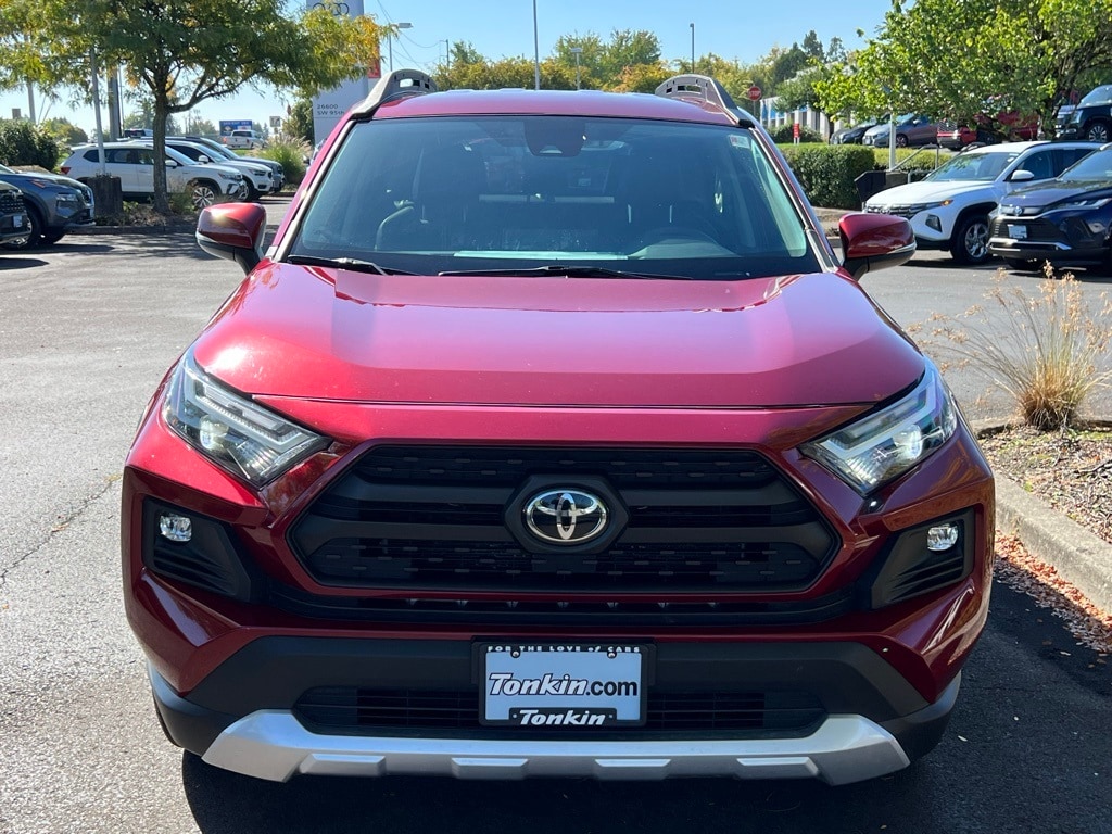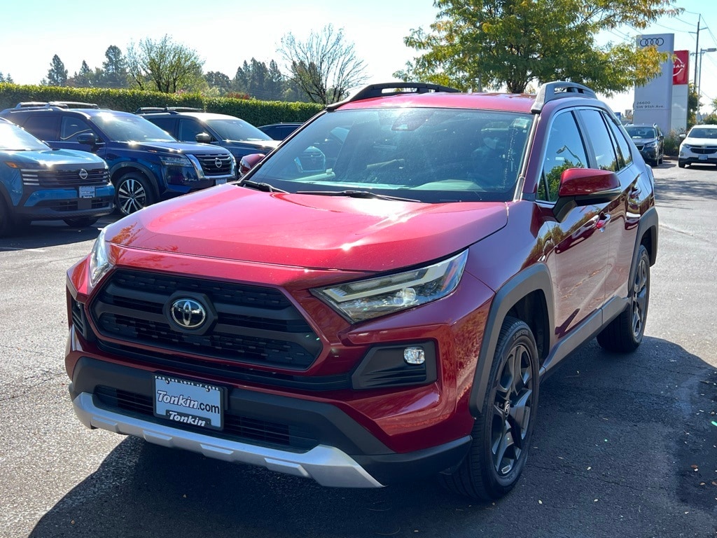 2023 Toyota RAV4 Adventure Red 2.5L 4-Cylinder DOHC Dual VVT-i 25/33 City/Highway MPG AWD, Black w/SofTex Seat Trim, 19" Split 5-Spoke Alloy Wheels, 4-Wheel Disc Brakes, 6 Speakers, ABS brakes, Air Conditioning, Alloy wheels, AM/FM radio: SiriusXM, Auto High-beam Headlights, Automatic temperature control, Axle Ratio: 3.177, Brake assist, Bumpers: body-color, Delay-off headlights, Driver door bin, Driver vanity mirror, Dual front impact airbags, Dual front side impact airbags, Electronic Stability Control, Emergency communication system: Safety Connect (10-year trial), Exterior Parking Camera Rear, Four wheel independent suspension, Front anti-roll bar, Front Bucket Seats, Front Center Armrest, Front dual zone A/C, Front fog lights, Front reading lights, Fully automatic headlights, Heated door mirrors, Illuminated entry, Knee airbag, Leather Shift Knob, Low tire pressure warning, Occupant sensing airbag, Outside temperature display, Overhead airbag, Overhead console, Panic alarm, Passenger door bin, Passenger vanity mirror, Power door mirrors, Power driver seat, Power steering, Power windows, Radio data system, Radio: AM/FM/XM Audio System, Rear anti-roll bar, Rear seat center armrest, Rear window defroster, Rear window wiper, Remote keyless entry, Security system, SofTex Seat Trim, Speed control, Speed-sensing steering, Split folding rear seat, Spoiler, Steering wheel mounted audio controls, Tachometer, Telescoping steering wheel, Tilt steering wheel, Traction control, Trip computer, Turn signal indicator mirrors, Variably intermittent wipers, AWD, Black w/SofTex Seat Trim. CARFAX One-Owner. Clean CARFAX. Priced below KBB Fair Purchase Price! Odometer is 13106 miles below market average! Our Best Price Up Front, No Games or Gimmicks. Our advertised price is for a retail type purchase and may not be available for Fleet or Commercial use type purchase; please call us to confirm.