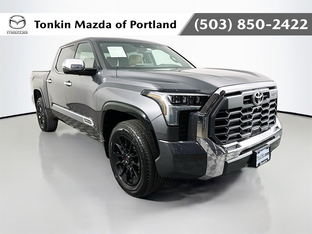 CARFAX One-Owner. 2023 Toyota Tundra 1794 4D CrewMax 3.4L V6 10-Speed Automatic 4WD 4WD, Leather, 10-Way Pwr Adj Heated and Ventilated Front Seats, 12 Speakers, 3.31 Axle Ratio, 4-Wheel Disc Brakes, ABS brakes, Air Conditioning, Alloy wheels, AM/FM radio: SiriusXM, Apple CarPlay/Android Auto, Auto High-beam Headlights, Auto-dimming door mirrors, Auto-dimming Rear-View mirror, Automatic temperature control, Brake assist, Bumpers: body-color, Chrome Exhaust Tail Pipe & Diffuser, Delay-off headlights, Driver door bin, Driver vanity mirror, Dual front impact airbags, Dual front side impact airbags, Electronic Stability Control, Emergency communication system: Safety Connect (10-year trial), Front anti-roll bar, Front Bucket Seats, Front Center Armrest, Front dual zone A/C, Front fog lights, Front reading lights, Front wheel independent suspension, Fully automatic headlights, Garage door transmitter: HomeLink, Heated door mirrors, Heated front seats, Heated rear seats, Heated steering wheel, Illuminated entry, Knee airbag, Leather Seat Trim, Leather Shift Knob, Low tire pressure warning, Memory seat, Navigation System, Occupant sensing airbag, Outside temperature display, Overhead airbag, Overhead console, Panic alarm, Passenger door bin, Passenger vanity mirror, Power door mirrors, Power driver seat, Power moonroof, Power passenger seat, Power steering, Power windows, Radio data system, Radio: Audio Multimedia System, Rain sensing wipers, Rear reading lights, Rear seat center armrest, Rear step bumper, Rear window defroster, Remote keyless entry, Safety Connect, Security system, Speed control, Speed-sensing steering, Split folding rear seat, Steering wheel memory, Steering wheel mounted audio controls, Tachometer, Telescoping steering wheel, Tilt steering wheel, Traction control, Trip computer, Turn signal indicator mirrors, Variably intermittent wipers, Ventilated front seats, Ventilated rear seats, Voltmeter, Wheels: 20" Machined Finish Alloy, 4WD, Leather.