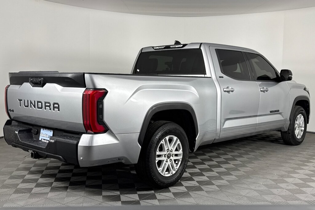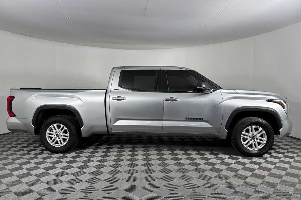 SR5 CONVENIENCE PACKAGE W/ BLIND SPOT MONITOR! SR5 PREMIUM PACKAGE! CARFAX One-Owner. Celestial Silver Metallic 2023 Toyota Tundra SR5 4D CrewMax 3.4L V6 10-Speed Automatic 4WD Android Auto, Apple CarPlay, Keyless Entry, Back Up Camera, Heated Seats, BlueTooth, 4WD, Black Cloth, 4-Way Adjustable Front Bucket Seats, 4-Wheel Disc Brakes, 8-Way Power-Adjustable Heated Front Seats, 9 Speakers, ABS brakes, Air Conditioning, AM/FM radio: SiriusXM, Apple CarPlay/Android Auto, Auto High-beam Headlights, Automatic temperature control, Backup Camera, Blind Spot Monitor w/Lane Change Assist, Bumpers: body-color, Delay-off headlights, Driver door bin, Driver vanity mirror, Dual front impact airbags, Dual front side impact airbags, Electronic Stability Control, Emergency communication system: Safety Connect (10-year trial), Fabric Seat Trim, Front anti-roll bar, Front Bucket Seats, Front Center Armrest, Front fog lights, Front reading lights, Front wheel independent suspension, Fully automatic headlights, Heated door mirrors, Illuminated entry, Knee airbag, Low tire pressure warning, Occupant sensing airbag, Outside temperature display, Overhead airbag, Overhead console, Panic alarm, Parking Support Alert/Brake, Passenger vanity mirror, Power door mirrors, Power steering, Power windows, Radio data system, Radio: Audio Multimedia System, Rear reading lights, Rear step bumper, Rear window defroster, Remote keyless entry, Safety Connect, Security system, SofTex Seat Trim, Speed control, Speed-sensing steering, Split folding rear seat, SR5 Convenience Package, SR5 Premium Package, Steering wheel mounted audio controls, Tachometer, Telescoping steering wheel, Tilt steering wheel, Traction control, Trip computer, Voltmeter.