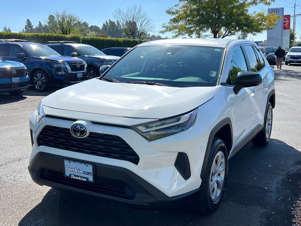 2024 Toyota RAV4 LE White 2.5L 4-Cylinder DOHC Dual VVT-i 27/34 City/Highway MPG AWD, Black Cloth, 17" Steel Wheels, 4-Wheel Disc Brakes, 6 Speakers, ABS brakes, Air Conditioning, AM/FM radio: SiriusXM, Auto High-beam Headlights, Axle Ratio: 3.177, Brake assist, Bumpers: body-color, Driver door bin, Driver vanity mirror, Dual front impact airbags, Dual front side impact airbags, Electronic Stability Control, Emergency communication system: Safety Connect (10-year trial), Exterior Parking Camera Rear, Fabric Seat Trim, Four wheel independent suspension, Front anti-roll bar, Front Bucket Seats, Front Center Armrest, Front reading lights, Illuminated entry, Knee airbag, Low tire pressure warning, Occupant sensing airbag, Outside temperature display, Overhead airbag, Overhead console, Panic alarm, Passenger door bin, Passenger vanity mirror, Power door mirrors, Power steering, Power windows, Radio data system, Radio: AM/FM/XM Audio System, Rear anti-roll bar, Rear seat center armrest, Rear window defroster, Rear window wiper, Remote keyless entry, Speed control, Speed-sensing steering, Split folding rear seat, Spoiler, Steering wheel mounted audio controls, Tachometer, Telescoping steering wheel, Tilt steering wheel, Traction control, Trip computer, AWD, Black Cloth. CARFAX One-Owner. Clean CARFAX. Priced below KBB Fair Purchase Price! Odometer is 1671 miles below market average! Our Best Price Up Front, No Games or Gimmicks. Our advertised price is for a retail type purchase and may not be available for Fleet or Commercial use type purchase; please call us to confirm.