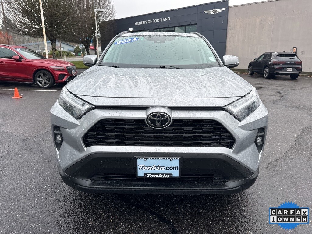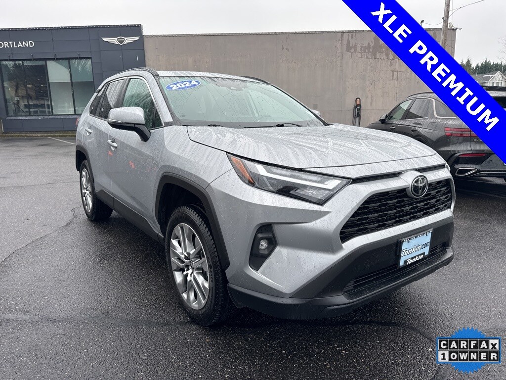 2024 Toyota RAV4 XLE Premium 4D Sport Utility 2.5L 4-Cylinder DOHC Dual VVT-i 8-Speed Automatic AWD Silver CARFAX One-Owner. 3 Spoke Leather Steering Wheel, 4-Wheel Disc Brakes, 6 Speakers, ABS brakes, Air Conditioning, Alloy wheels, AM/FM radio: SiriusXM, Auto High-beam Headlights, Automatic temperature control, Axle Ratio: 3.177, Brake assist, Bumpers: body-color, Delay-off headlights, Driver door bin, Driver vanity mirror, Dual front impact airbags, Dual front side impact airbags, Electronic Stability Control, Emergency communication system: Safety Connect (10-year trial), Exterior Parking Camera Rear, Four wheel independent suspension, Front anti-roll bar, Front Bucket Seats, Front Center Armrest, Front dual zone A/C, Front reading lights, Fully automatic headlights, Heated door mirrors, Illuminated entry, Knee airbag, Leather Shift Knob, Leather steering wheel, Low tire pressure warning, Occupant sensing airbag, Outside temperature display, Overhead airbag, Overhead console, Panic alarm, Passenger door bin, Passenger vanity mirror, Power door mirrors, Power driver seat, Power Liftgate, Power moonroof, Power steering, Power windows, Radio data system, Radio: AM/FM/XM Audio System, Rear anti-roll bar, Rear seat center armrest, Rear window defroster, Rear window wiper, Remote keyless entry, SofTex Seat Trim, Speed control, Speed-sensing steering, Split folding rear seat, Spoiler, Steering wheel mounted audio controls, Tachometer, Telescoping steering wheel, Tilt steering wheel, Traction control, Trip computer, Turn signal indicator mirrors, Variably intermittent wipers, Wheels: 19" 5-Spoke Silver Alloy.