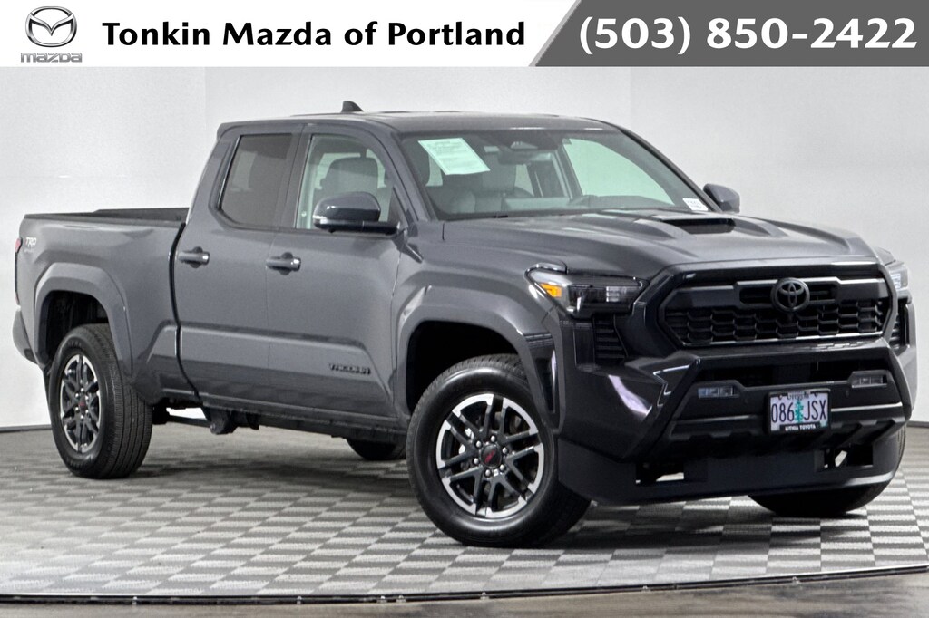 120V/400W AC Power Inverter, 3D Panoramic View Monitor, 8-Way Power Driver & Passenger Seat Adjusters, ABS brakes, Alloy wheels, Apple CarPlay/Android Auto, Black Badge Overlay (TMS), Deck DC Power Pre-wire, Deck Storage Box, Digital Key Capability, Digital Rearview Mirror, Dual Zone Automatic Climate Control, Electronic Stability Control, Front & Rear Parking Assist w/Automatic Braking, Heated & Ventilated Front Seats, Heated door mirrors, Heated Leather-Trimmed Steering Wheel, Illuminated entry, Integrated Trailer Brake Controller, JBL Premium Audio, Long Bed w/Inverter, Low tire pressure warning, Pedestrian Detection, Power Horizontal Rear Window, Power Tilt/Slide Moonroof w/Sliding Sunshade, Pre-Wired Auxiliary Switches, Qi-Compatible Wireless Charging, Radio: 14" Toyota Audio Multimedia, Remote keyless entry, SofTex Seat Trim, Spray-On Bed Liner (TMS), TACOMA Stamped Power Open & Close Tailgate, Towing Hitch, Towing Technology Package, Traction control, TRD Sport Premium Package.