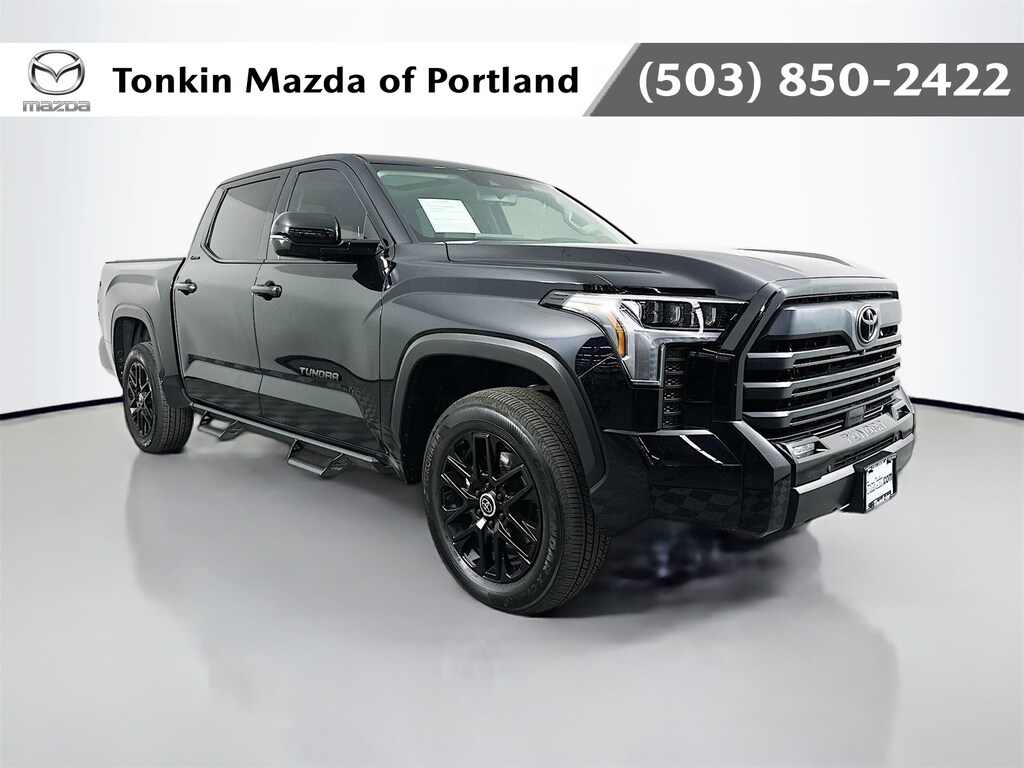 LIMITED PREMIUM PACKAGE! NIGHTSHADE! LIMITED POWER PACKAGE W/WIRELESS SMARTPHONE CHARGING! Midnight Black Metallic 2024 Toyota Tundra Limited 4D CrewMax 3.4L V6 10-Speed Automatic 4WD Android Auto, Apple CarPlay, Keyless Entry, Back Up Camera, Heated Seats, BlueTooth, 4WD, Black Cloth, 4-Wheel Disc Brakes, 8-Way Pwr Adjustable Heated/Ventilated Front Seats, 9 Speakers, ABS brakes, Active Cruise Control, Air Conditioning, Alloy wheels, AM/FM radio: SiriusXM, Apple CarPlay/Android Auto, Auto High-beam Headlights, Auto-dimming door mirrors, Auto-dimming Rear-View mirror, Automatic temperature control, Backup Camera, Brake assist, Bumpers: body-color, Delay-off headlights, Driver door bin, Driver vanity mirror, Dual front impact airbags, Dual front side impact airbags, Electronic Stability Control, Emergency communication system: Safety Connect (10-year trial), Front anti-roll bar, Front Bucket Seats, Front Center Armrest, Front dual zone A/C, Front fog lights, Front reading lights, Front wheel independent suspension, Fully automatic headlights, Garage door transmitter: HomeLink, Heated door mirrors, Heated front seats, Illuminated entry, Knee airbag, Leather Shift Knob, Low tire pressure warning, Memory seat, Navigation System, Nightshade Package, Occupant sensing airbag, Outside temperature display, Overhead airbag, Overhead console, Panic alarm, Passenger door bin, Passenger vanity mirror, Power door mirrors, Power driver seat, Power passenger seat, Power steering, Power windows, Radio data system, Radio: Audio Multimedia System, Rear reading lights, Rear seat center armrest, Rear step bumper, Rear window defroster, Remote keyless entry, Safety Connect, Security system, SofTex Seat Trim, Speed control, Speed-sensing steering, Split folding rear seat, Steering wheel mounted audio controls, Tachometer, Telescoping steering wheel, Tilt steering wheel, Traction control, Trip computer, Turn signal indicator mirrors, Ventilated front seats, Voltmeter, Wheels: 20" x 8J Matte Black TRD Sport Style.