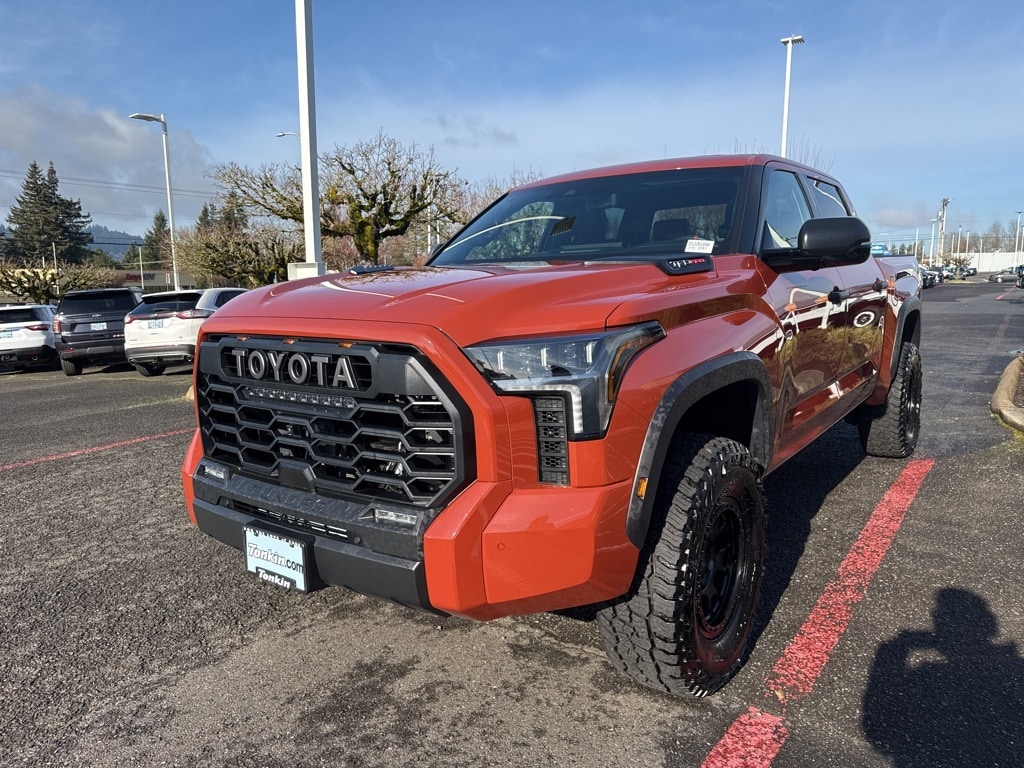 Recent Arrival! 2024 Toyota Tundra Hybrid TRD Pro 3.4L V6 10-Speed Automatic 4WD 4D Crew Cab Terra 4WD, TRD Pro Package, 12 Speakers, 3.31 Axle Ratio, 4-Wheel Disc Brakes, ABS brakes, Air Conditioning, AM/FM radio: SiriusXM, Apple CarPlay/Android Auto, Auto High-beam Headlights, Auto-dimming door mirrors, Auto-dimming Rear-View mirror, Automatic temperature control, Brake assist, Bumpers: body-color, Custom Fuel Wheels and Off-Road Tires, Delay-off headlights, Driver door bin, Driver vanity mirror, Dual front impact airbags, Dual front side impact airbags, Electronic Stability Control, Emergency communication system: Safety Connect (10-year trial), Exterior Parking Camera Rear, Front anti-roll bar, Front Bucket Seats, Front Center Armrest, Front dual zone A/C, Front fog lights, Front reading lights, Front wheel independent suspension, Fully automatic headlights, Garage door transmitter: HomeLink, Heated & Ventilated Front Bucket Seats, Heated door mirrors, Heated front seats, Heated steering wheel, Illuminated entry, Knee airbag, Leather Shift Knob, Low tire pressure warning, Memory seat, Navigation System, Occupant sensing airbag, Outside temperature display, Overhead airbag, Overhead console, Panic alarm, Passenger door bin, Passenger vanity mirror, Power door mirrors, Power driver seat, Power moonroof, Power passenger seat, Power steering, Power windows, Radio data system, Radio: Premium Audio w/JBL, Rear reading lights, Rear seat center armrest, Rear step bumper, Rear window defroster, Remote keyless entry, Security system, SofTex Seat Trim, Speed control, Speed-sensing steering, Split folding rear seat, Sport steering wheel, Steering wheel mounted audio controls, Tachometer, Telescoping steering wheel, Tilt steering wheel, Traction control, Trip computer, Turn signal indicator mirrors, Variably intermittent wipers, Ventilated front seats, Voltmeter, Wheels: 18" x 8" Black BBS Forged Aluminum, 4WD, TRD Pro Package. ***Call (503) 258-5800 to speak to a Sales Professional*** Come in to Ron Tonkin Chrysler Jeep Dodge Ram Fiat in Milwaukie to test drive today! DL0087.
