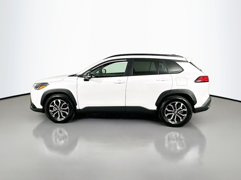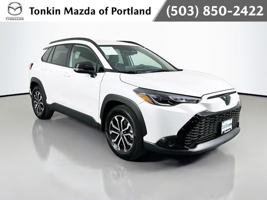 CARFAX One-Owner. Wind Chill Pearl 2025 Toyota Corolla Cross Hybrid SE 4D Sport Utility 2.0L I4 PDI Hybrid DOHC 16V LEV3-SULEV30 150hp eCVT AWD Android Auto, Apple CarPlay, Keyless Entry, Blind Spot, Back Up Camera, 2.0L I4 PDI Hybrid DOHC 16V LEV3-SULEV30 150hp, ABS brakes, Active Cruise Control, Alloy wheels, Electronic Stability Control, Heated door mirrors, Illuminated entry, Low tire pressure warning, Remote keyless entry, Traction control, 4-Wheel Disc Brakes, 6 Speakers, Air Conditioning, AM/FM radio: SiriusXM, Apple CarPlay/Android Auto, Auto High-beam Headlights, Automatic temperature control, Backup Camera, Brake assist, Bumpers: body-color, Delay-off headlights, Driver door bin, Driver vanity mirror, Dual front impact airbags, Dual front side impact airbags, Emergency communication system: Safety Connect (up to 10-year trial subscription), Fabric Seat Trim, Four wheel independent suspension, Front anti-roll bar, Front Bucket Seats, Front Center Armrest, Front reading lights, Fully automatic headlights, Knee airbag, Leather steering wheel, Occupant sensing airbag, Outside temperature display, Overhead airbag, Panic alarm, Passenger door bin, Passenger vanity mirror, Power door mirrors, Power steering, Power windows, Radio data system, Radio: 8" Toyota Audio Multimedia with 6 Speakers, Rear anti-roll bar, Rear side impact airbag, Rear window defroster, Rear window wiper, Speed control, Split folding rear seat, Spoiler, Steering wheel mounted audio controls, Tachometer, Telescoping steering wheel, Tilt steering wheel, Trip computer, Turn signal indicator mirrors, Variably intermittent wipers, Wheels: 17" Silver-Colored Alloy, Bluetooth, 2.0L I4 PDI Hybrid DOHC 16V LEV3-SULEV30 150hp, ABS brakes, Active Cruise Control, Alloy wheels, Electronic Stability Control, Heated door mirrors, Illuminated entry, Low tire pressure warning, Remote keyless entry, Traction control.