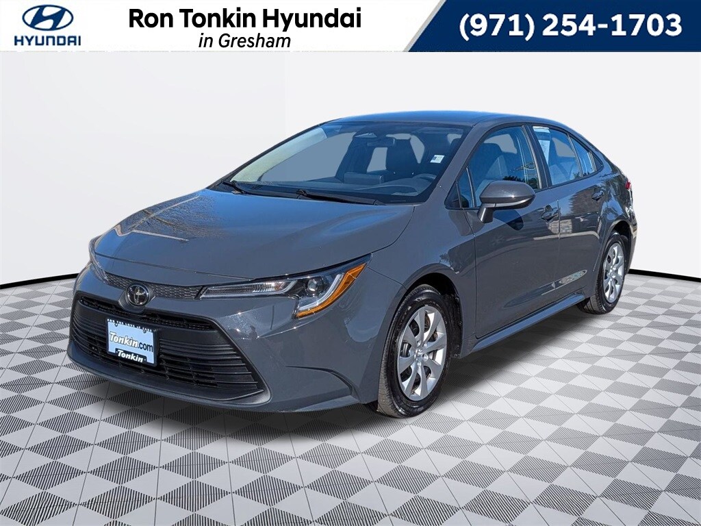2025 Toyota Corolla LE 2.0L I4 DOHC 16V CVT FWD 4D Sedan Black 4-Wheel Disc Brakes, 6 Speakers, ABS brakes, Air Conditioning, AM/FM radio: SiriusXM, Apple CarPlay/Android Auto, Auto High-beam Headlights, Automatic temperature control, Brake assist, Bumpers: body-color, Delay-off headlights, Driver door bin, Driver vanity mirror, Dual front impact airbags, Dual front side impact airbags, Electronic Stability Control, Emergency communication system: Safety Connect (up to 10-year trial subscription), Exterior Parking Camera Rear, Fabric Seat Trim, Front anti-roll bar, Front Bucket Seats, Front Center Armrest, Front reading lights, Front wheel independent suspension, Fully automatic headlights, Illuminated entry, Knee airbag, Low tire pressure warning, Occupant sensing airbag, Outside temperature display, Overhead airbag, Panic alarm, Passenger door bin, Passenger vanity mirror, Power door mirrors, Power steering, Power windows, Radio data system, Radio: 8" Toyota Audio Multimedia, Rear anti-roll bar, Rear seat center armrest, Rear side impact airbag, Rear window defroster, Remote keyless entry, Speed control, Split folding rear seat, Steering wheel mounted audio controls, Tachometer, Telescoping steering wheel, Tilt steering wheel, Traction control, Trip computer, Wheels: 16" Steel with Covers. CARFAX One-Owner. Clean CARFAX. Call for availability. Come in to Ron Tonkin Gresham Hyundai to test drive today! DA2028 View our entire inventory at https://www.rontonkinhyundai.com/