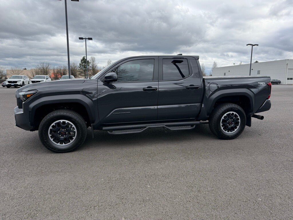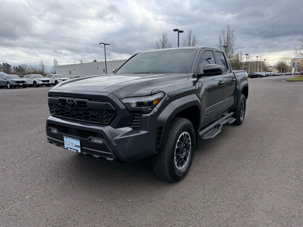 3.583 Axle Ratio, 4-Wheel Disc Brakes, 6 Speakers, ABS brakes, Air Conditioning, Alloy wheels, AM/FM radio: SiriusXM, Anti-whiplash front head restraints, Apple CarPlay/Android Auto, Auto High-beam Headlights, Auto-dimming Rear-View mirror, Automatic temperature control, Brake assist, Bumpers: body-color, Driver door bin, Driver vanity mirror, Dual front impact airbags, Dual front side impact airbags, Electronic Stability Control, Emergency communication system: Safety Connect (1-year trial), Exterior Parking Camera Rear, Fabric Seat Trim, Four wheel independent suspension, Front anti-roll bar, Front Bucket Seats, Front Center Armrest, Front fog lights, Front reading lights, Fully automatic headlights, Heated door mirrors, Illuminated entry, Knee airbag, Leather Shift Knob, Leather steering wheel, Low tire pressure warning, Occupant sensing airbag, Outside temperature display, Overhead airbag, Overhead console, Panic alarm, Passenger door bin, Passenger vanity mirror, Power door mirrors, Power steering, Power windows, Radio: 8" Toyota Audio Multimedia, Rear step bumper, Rear window defroster, Remote keyless entry, Security system, Speed control, Speed-sensing steering, Split folding rear seat, Steering wheel mounted audio controls, Tachometer, Telescoping steering wheel, Tilt steering wheel, Traction control, TRD Off Road Package, Trip computer, Turn signal indicator mirrors, Variably intermittent wipers, Wheels: 17" TRD Off-Road Alloy.