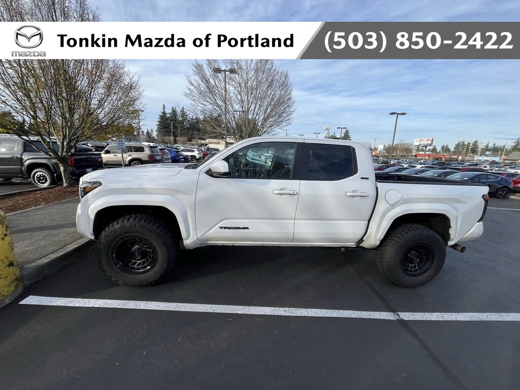 Available Soon. Pending Mechanical Pre-Inspection. Please Call (503) 257-2420 for Details! ! CARFAX One-Owner. Clean CARFAX. Ice Cap 2025 Toyota Tacoma SR5 4D Double Cab 2.4L 4-Cylinder 8-Speed Automatic RWD 4-Wheel Disc Brakes, 6 Speakers, ABS brakes, Air Conditioning, Alloy wheels, AM/FM radio: SiriusXM, Android Auto, Anti-whiplash front head restraints, Apple CarPlay, Apple CarPlay/Android Auto, Auto High-beam Headlights, Auto-dimming Rear-View mirror, Back Up Camera, Backup Camera, Blind Spot, BlueTooth, Brake assist, Bumpers: body-color, Driver door bin, Dual front impact airbags, Dual front side impact airbags, Electronic Stability Control, Emergency communication system: Safety Connect (1-year trial), Fabric Seat Trim, Four wheel independent suspension, Front anti-roll bar, Front Bucket Seats, Front Center Armrest, Front fog lights, Front reading lights, Fully automatic headlights, Heated door mirrors, Illuminated entry, Keyless Entry, Knee airbag, Low tire pressure warning, Occupant sensing airbag, Outside temperature display, Overhead airbag, Overhead console, Panic alarm, Passenger door bin, Power door mirrors, Power steering, Power windows, Radio: 8" Toyota Audio Multimedia, Rear step bumper, Rear window defroster, Remote keyless entry, Speed control, Speed-sensing steering, Split folding rear seat, Steering wheel mounted audio controls, Tachometer, Telescoping steering wheel, Tilt steering wheel, Traction control, Trip computer.