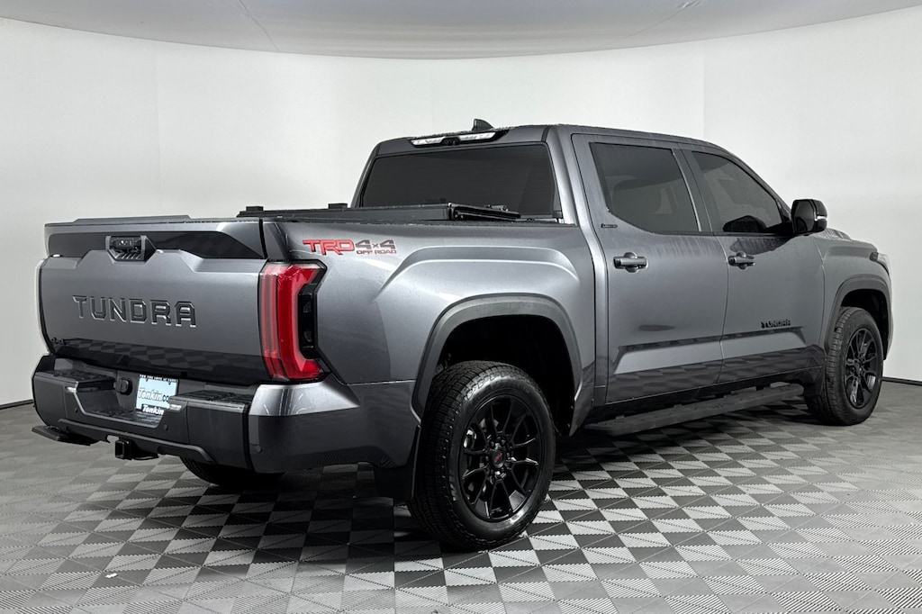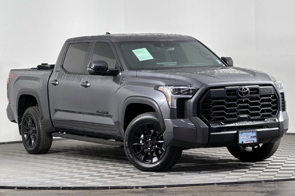 TRD OFF-ROAD PACKAGE! CARFAX One-Owner. Magnetic Gray Metallic 2025 Toyota Tundra Limited 4D CrewMax 3.4L V6 10-Speed Automatic 4WD Android Auto, Apple CarPlay, Keyless Entry, Back Up Camera, BlueTooth, 4WD, Black Cloth, 4-Wheel Disc Brakes, 8-Way Pwr Adjustable Heated/Ventilated Front Seats, 9 Speakers, ABS brakes, Active Cruise Control, Air Conditioning, Alloy wheels, AM/FM radio: SiriusXM, Apple CarPlay/Android Auto, Auto High-beam Headlights, Auto-dimming door mirrors, Auto-dimming Rear-View mirror, Automatic temperature control, Backup Camera, Brake assist, Bumpers: body-color, Delay-off headlights, Driver door bin, Driver vanity mirror, Dual front impact airbags, Dual front side impact airbags, Electronic Stability Control, Emergency communication system: Safety Connect (10-year trial), Front anti-roll bar, Front Bucket Seats, Front Center Armrest, Front dual zone A/C, Front fog lights, Front reading lights, Front wheel independent suspension, Fully automatic headlights, Garage door transmitter: HomeLink, Heated door mirrors, Heated front seats, Illuminated entry, Knee airbag, Leather Shift Knob, Leather steering wheel, Low tire pressure warning, Memory seat, Multi-Terrain Back Monitor, Navigation System, Occupant sensing airbag, Outside temperature display, Overhead airbag, Overhead console, Panic alarm, Passenger door bin, Passenger vanity mirror, Power door mirrors, Power driver seat, Power passenger seat, Power steering, Power windows, Radio data system, Radio: Audio Multimedia System, Rear reading lights, Rear seat center armrest, Rear step bumper, Rear window defroster, Remote keyless entry, Safety Connect, Security system, SofTex Seat Trim, Speed control, Speed-sensing steering, Split folding rear seat, Steering wheel mounted audio controls, Tachometer, Telescoping steering wheel, Tilt steering wheel, Traction control, TRD Off-Road Package, Trip computer, Turn signal indicator mirrors, Ventilated front seats, Voltmeter, Wheels: 20" TRD Alloy.