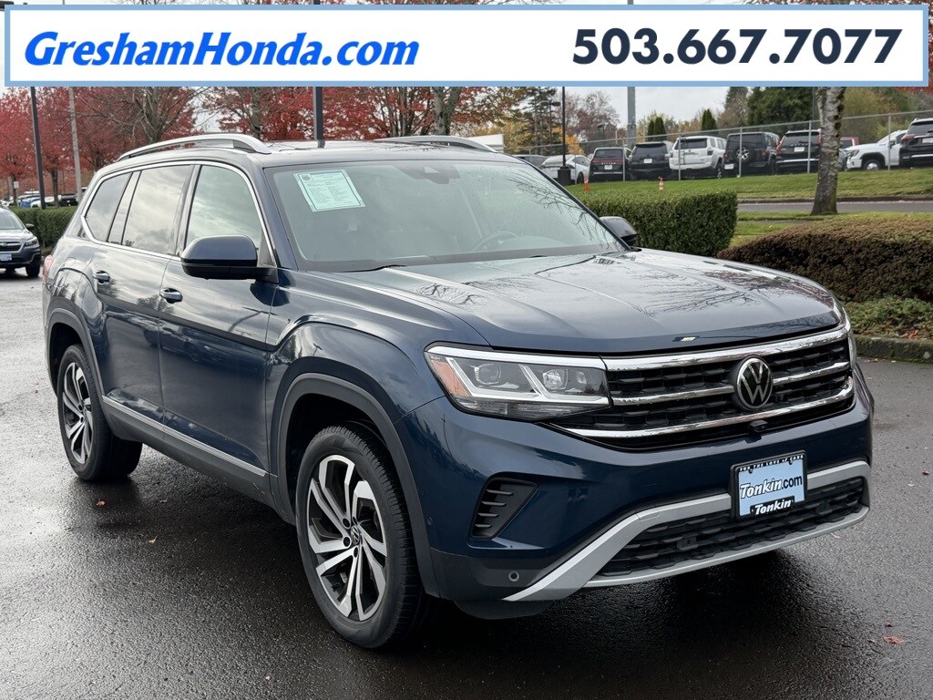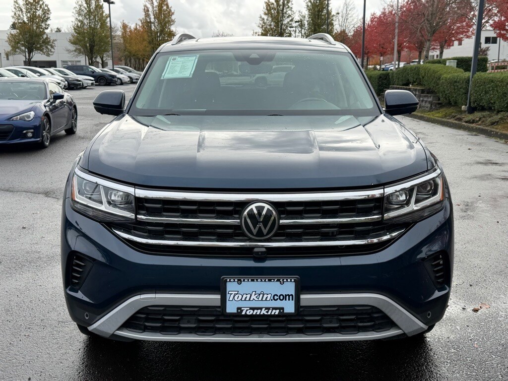 12 Speakers, 3.60 Axle Ratio, 3rd row seats: split-bench, 4-Wheel Disc Brakes, ABS brakes, Air Conditioning, Alloy wheels, Auto High-beam Headlights, Auto-dimming Rear-View mirror, Automatic temperature control, Brake assist, Bumpers: body-color, Compass, Delay-off headlights, Driver door bin, Driver vanity mirror, Dual front impact airbags, Dual front side impact airbags, Electronic Stability Control, Emergency communication system: VW Car-Net services (capabilities require enrollment or subscription), Four wheel independent suspension, Front anti-roll bar, Front Bucket Seats, Front Center Armrest, Front dual zone A/C, Front fog lights, Front reading lights, Fully automatic headlights, Heated door mirrors, Heated front seats, Heated rear seats, Heated steering wheel, Htd/Actively Ventilated Comfort Front Sport Seats, Illuminated entry, Leather Shift Knob, Low tire pressure warning, Memory seat, Navigation System, Occupant sensing airbag, Outside temperature display, Overhead airbag, Overhead console, Panic alarm, Passenger door bin, Passenger vanity mirror, Perforated Vienna Leather Seating Surfaces, Power door mirrors, Power driver seat, Power Liftgate, Power moonroof, Power passenger seat, Power steering, Power windows, Radio data system, Rain sensing wipers, Rear air conditioning, Rear anti-roll bar, Rear audio controls, Rear reading lights, Rear seat center armrest, Rear window defroster, Rear window wiper, Remote keyless entry, Roof rack: rails only, Security system, Speed control, Speed-sensing steering, Split folding rear seat, Spoiler, Standard Suspension, Steering wheel mounted audio controls, Tachometer, Telescoping steering wheel, Tilt steering wheel, Traction control, Trip computer, Turn signal indicator mirrors, Variably intermittent wipers, Ventilated front seats, Wheels: 20" 5-Spoke 2-Tone Machined Alloy.