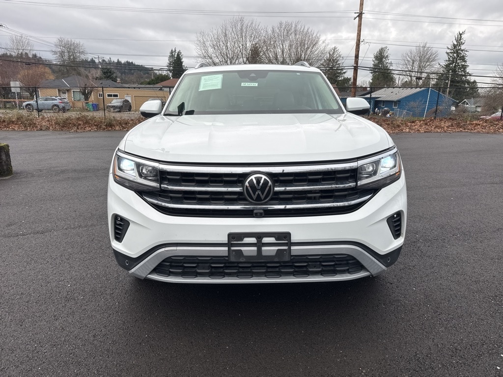 Recent Arrival! CARFAX One-Owner. 12 Speakers, 3.60 Axle Ratio, 3rd row seats: split-bench, 4-Wheel Disc Brakes, ABS brakes, Active Blind Spot Monitor, Active Cruise Control, Air Conditioning, Alloy wheels, AM/FM radio: SiriusXM with 360L, Auto High-beam Headlights, Auto-dimming Rear-View mirror, Automatic temperature control, Brake assist, Bumpers: body-color, Compass, Delay-off headlights, Driver door bin, Driver vanity mirror, Dual front impact airbags, Dual front side impact airbags, Electronic Stability Control, Emergency communication system: VW Car-Net services (capabilities require enrollment or subscription), First Aid Kit, Four wheel independent suspension, Frameless Self-Dimming Rearview Mirror, Front anti-roll bar, Front Bucket Seats, Front Center Armrest, Front dual zone A/C, Front fog lights, Front reading lights, Fully automatic headlights, Heated door mirrors, Heated front seats, Heated rear seats, Heated steering wheel, Heavy Duty Trunk Liner w/VW CarGo Blocks, Htd/Actively Ventilated Comfort Front Sport Seats, Illuminated entry, Leather Shift Knob, Low tire pressure warning, Luggage Net, Memory seat, Navigation System, Occupant sensing airbag, Outside temperature display, Overhead airbag, Overhead console, Panic alarm, Passenger door bin, Passenger vanity mirror, Perforated Vienna Leather Seating Surfaces, Power door mirrors, Power driver seat, Power Liftgate, Power moonroof, Power passenger seat, Power steering, Power windows, Privacy Cover, Radio data system, Radio: MIB3 Discover Media w/8" Touchscreen Navigation, Rain sensing wipers, Rear air conditioning, Rear anti-roll bar, Rear audio controls, Rear Bumper Applique in Chrome, Rear reading lights, Rear seat center armrest, Rear window defroster, Rear window wiper, Remote keyless entry, Roadside Assistance Kit, Roof rack: rails only, Rubber Mats Kit - Bench Seat, Security system, Speed control, Speed-sensing steering, Split folding rear seat, Spoiler, Standard Suspension, Steering wheel mounted audio controls, Tachometer, Telescoping steering wheel, Tilt steering wheel, Traction control, Trip computer, Turn signal indicator mirrors, Variably intermittent wipers, Ventilated front seats, Wheels: 20" 5-Spoke 2-Tone Machined Alloy. 2021 Volkswagen Atlas SEL Premium 4D Sport Utility 3.6L V6 8-Speed Automatic with Tiptronic AWD Pure White